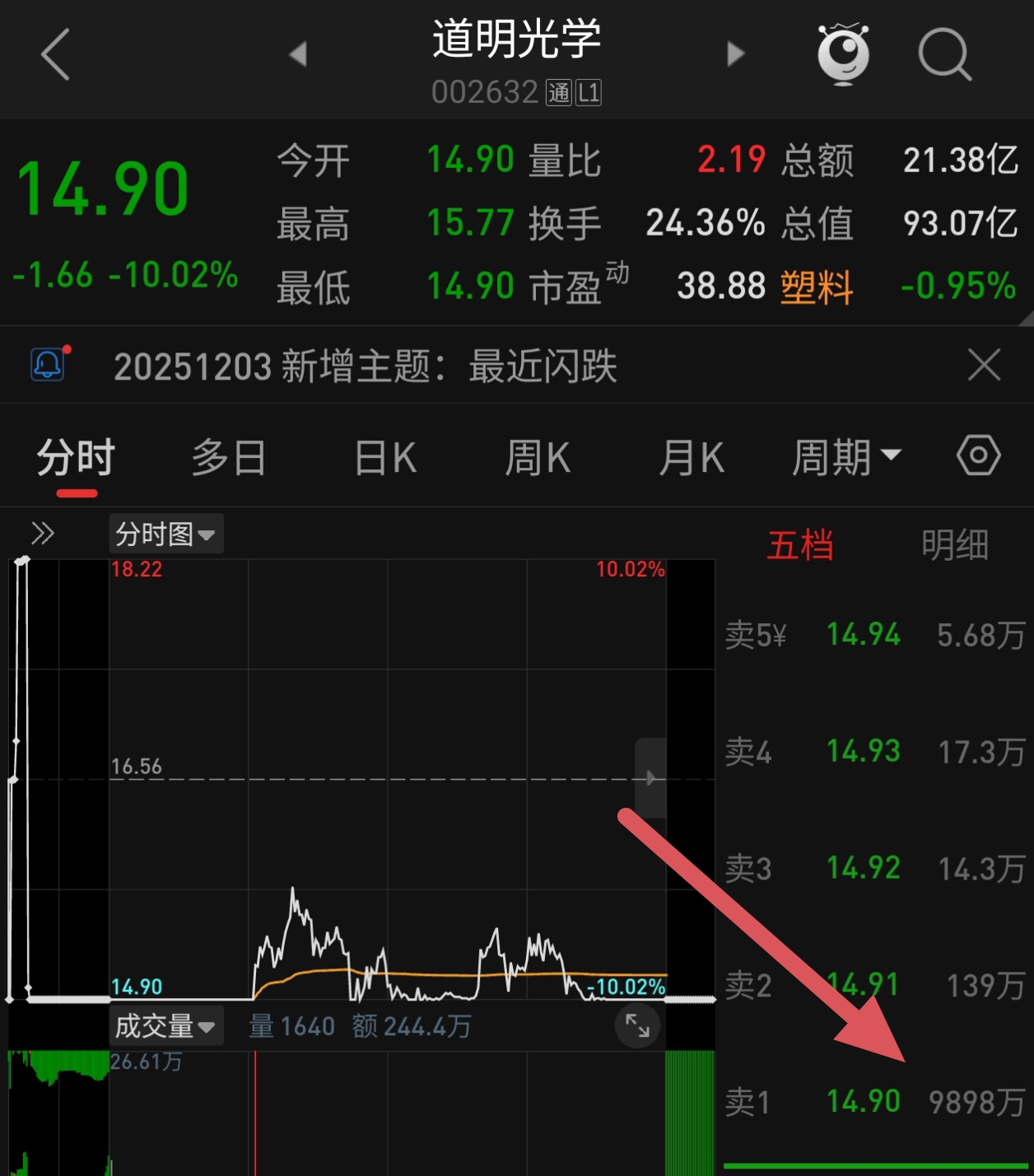 $道明光学(SZ002632)$ 这卖一何意味呢