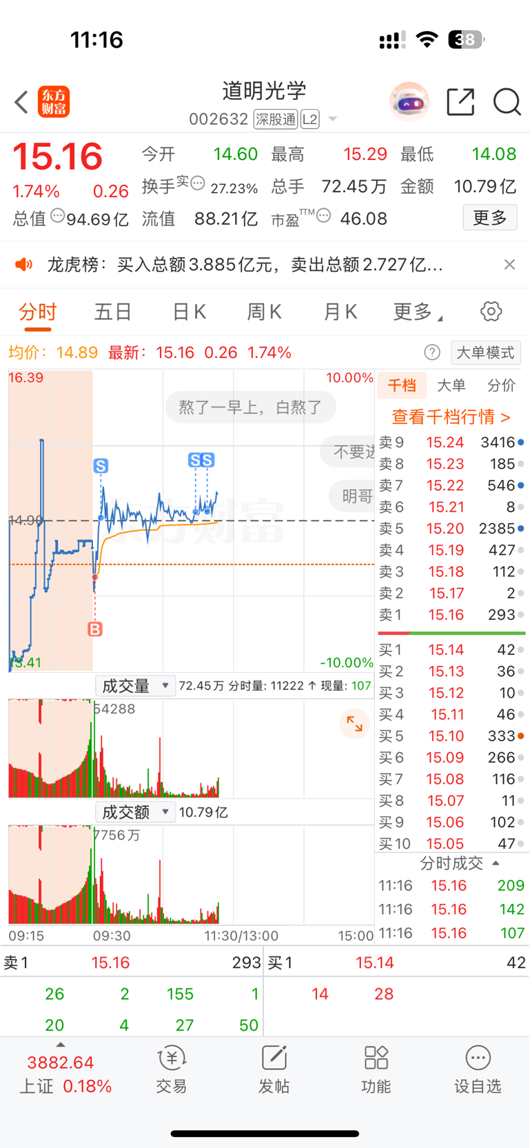 $道明光学(SZ002632)$ 剩余的3成卖了不想接了,你太能熬了大哥