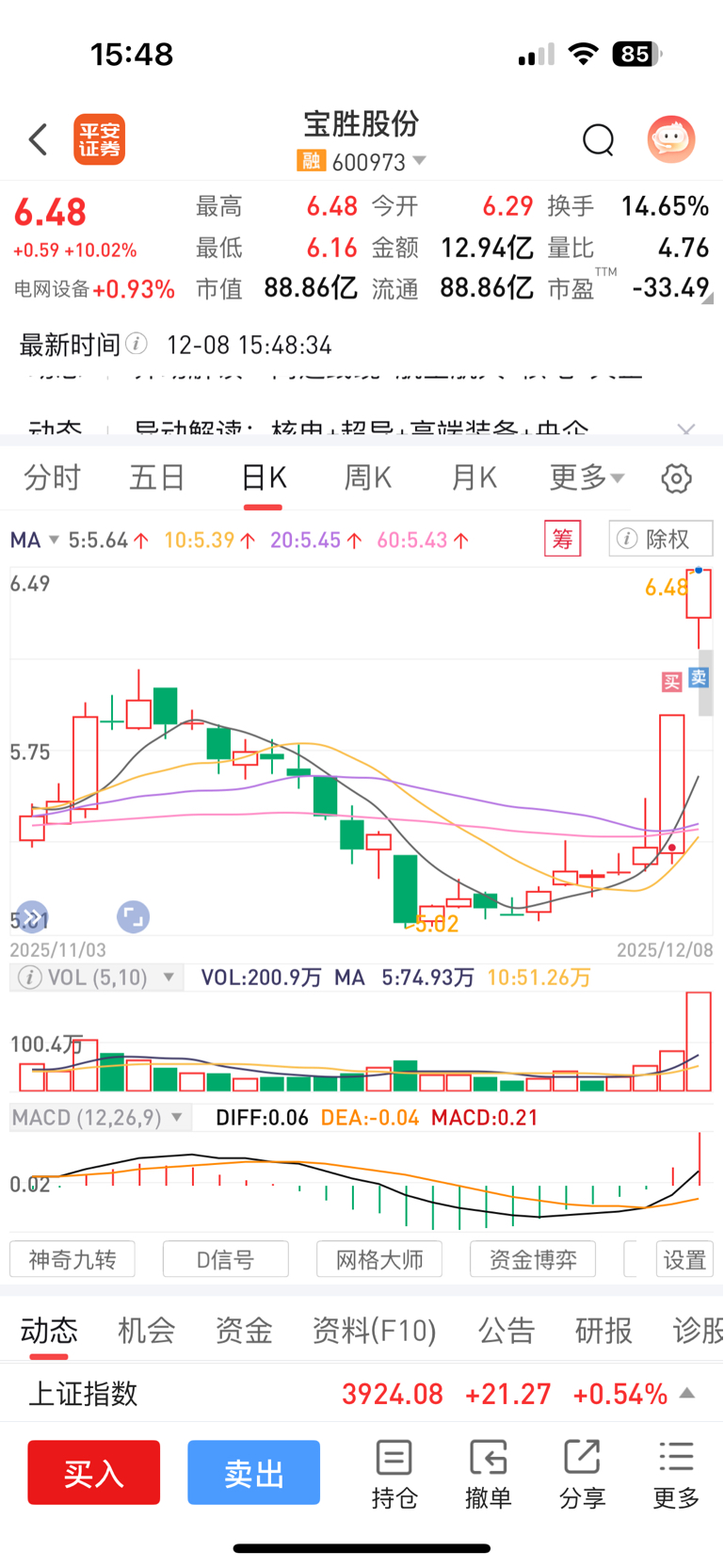 今天我是卖了宝胜买的它,我说说自己的观点,明天这个票不能低开,低开很危险,今天下