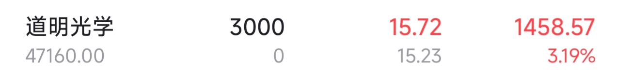 昨天15.23买的3000股,今天15.72元卖了,收益1458元。