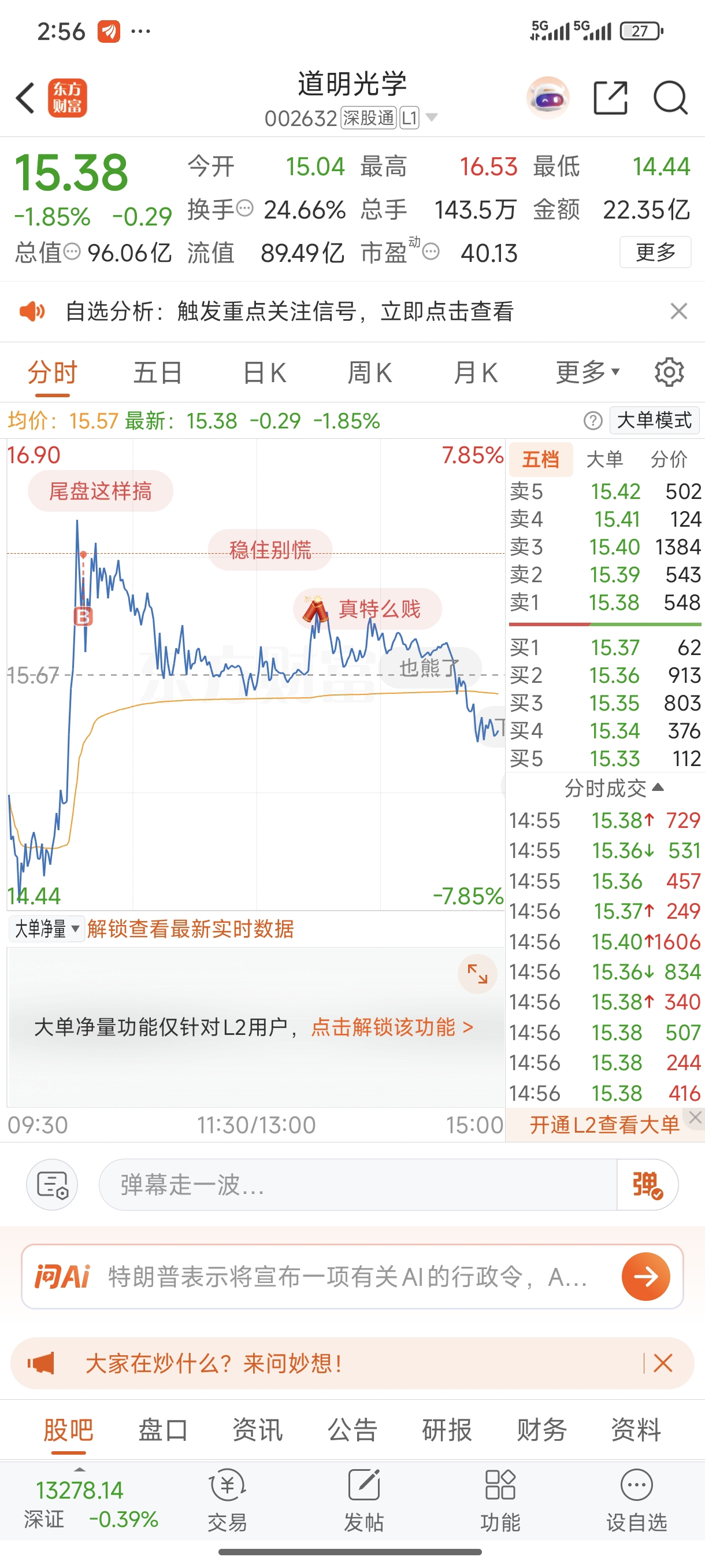 $道明光学(SZ002632)$ 追高吃大面 让自己不长记性! 下次记住了。。
