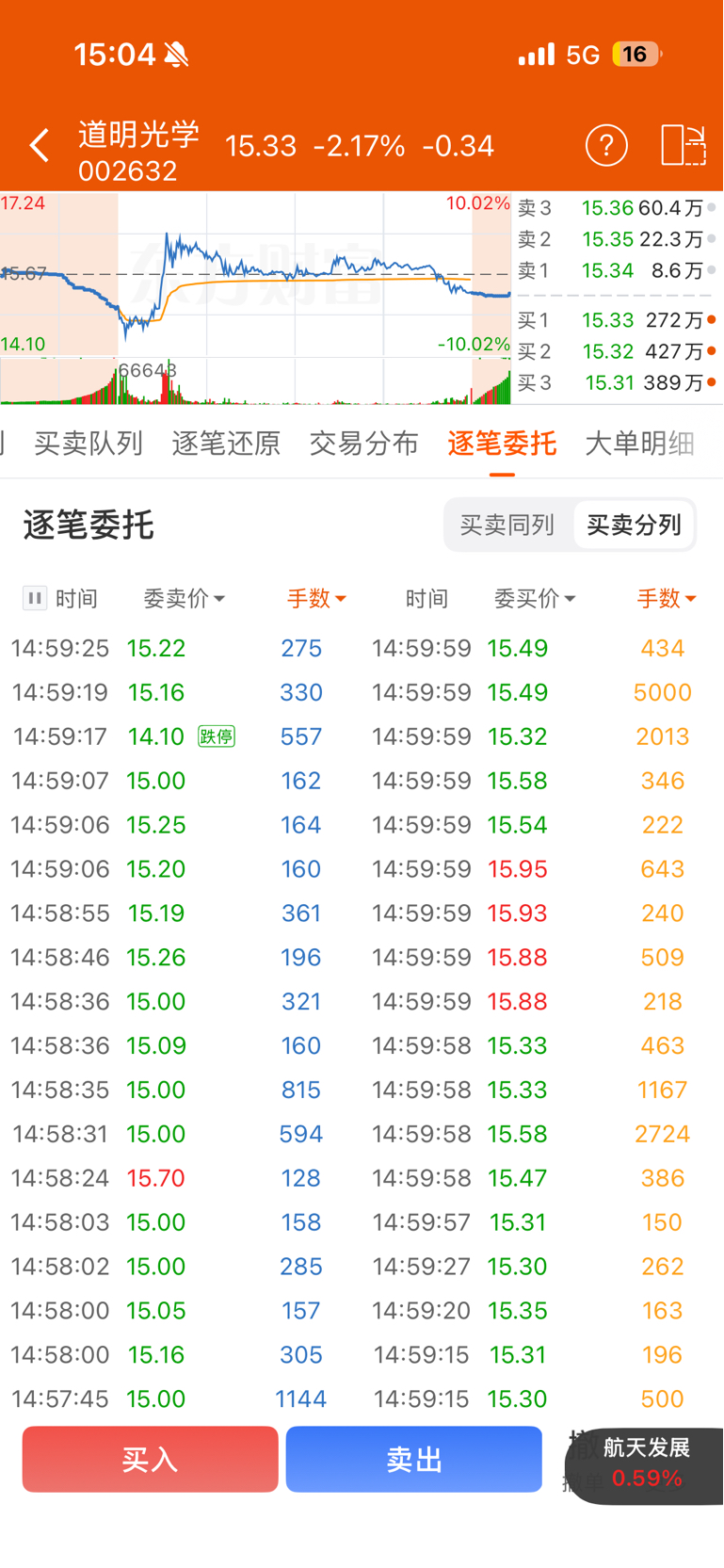 $道明光学(SZ002632)$ 今天一天都没有主动性,小套,暂时就这样吧。被套了要自救了。