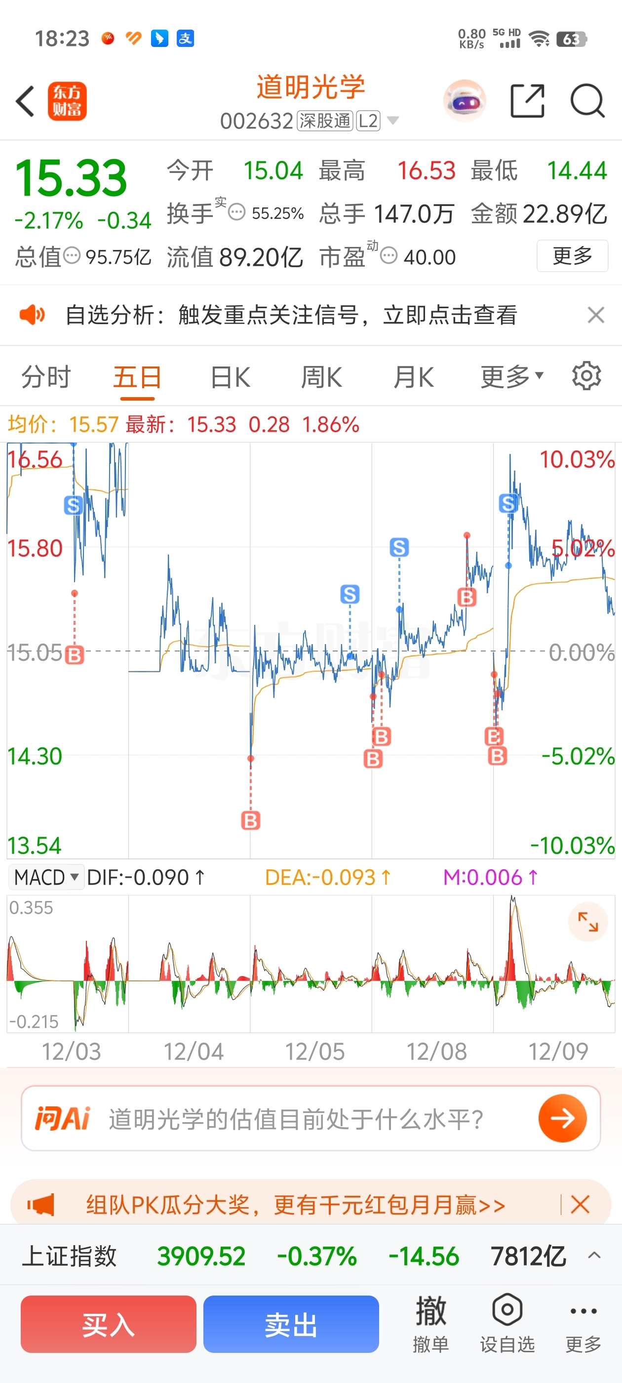 $道明光学(SZ002632)$ 最近老是低开高走,一直在里面做T,反正总舵主这个位置出不了那么多货,空间不太够