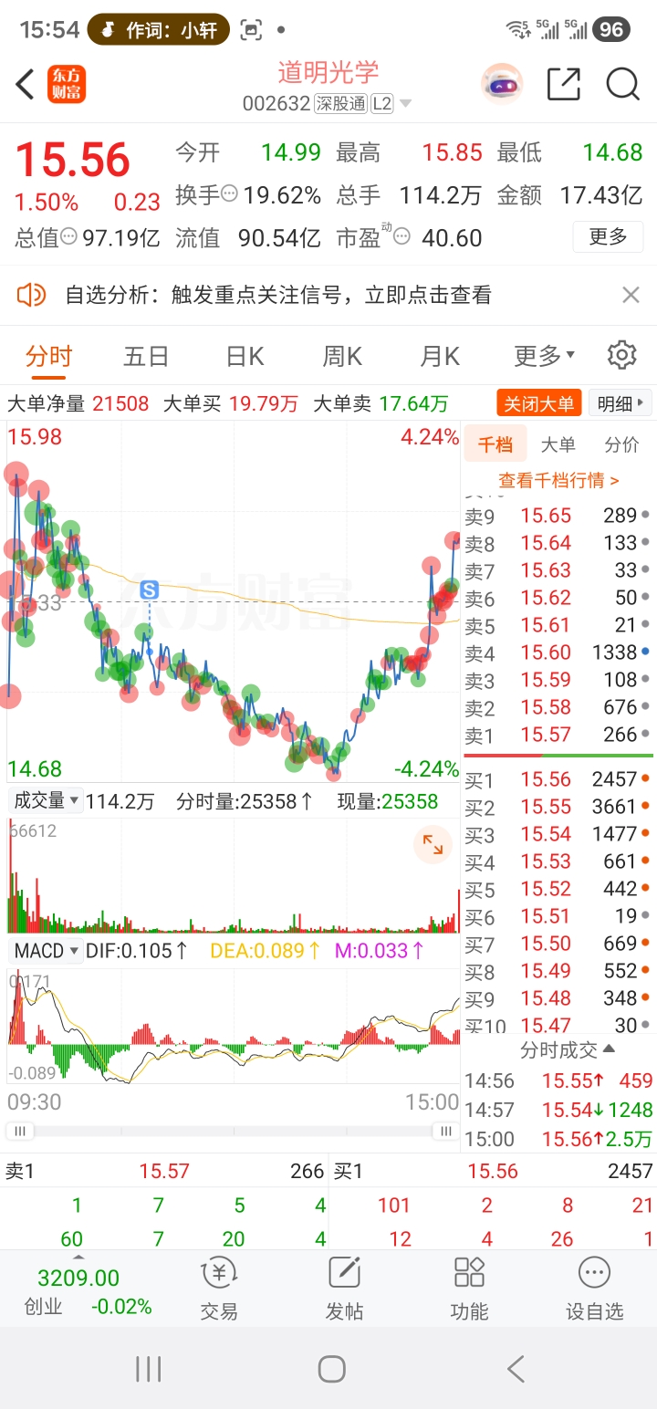 $道明光学(SZ002632)$ 倒V 蛇形走位v……吊打小散