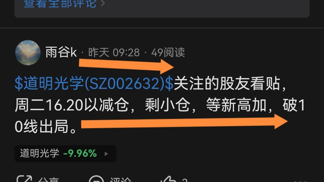 $道明光学(SZ002632)$ 关注的股友看贴,注意时间,上方抛压太大,周二以减仓,周三以提示注意,今天以破10线出局,持赛微。