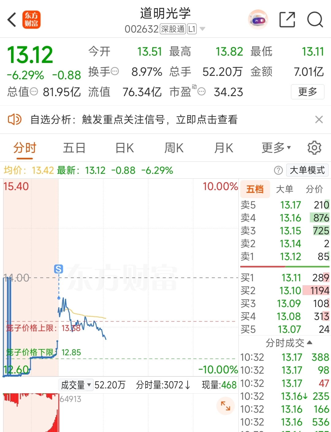 $道明光学(SZ002632)$ 你们坚持吧我走了,昨天那种情况今天回头不了