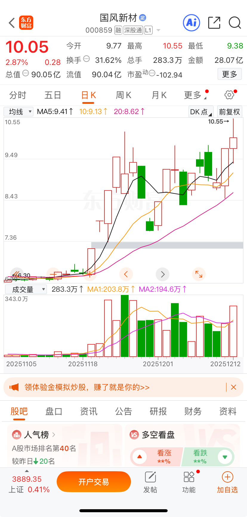 兄弟姐妹们,来我的国风新材吧,道明光学这么好的业绩,形态,还有题材属性,没有走二波,就是不正常的,所以来正常的国风新材吧,趋势走的稳稳当当的。