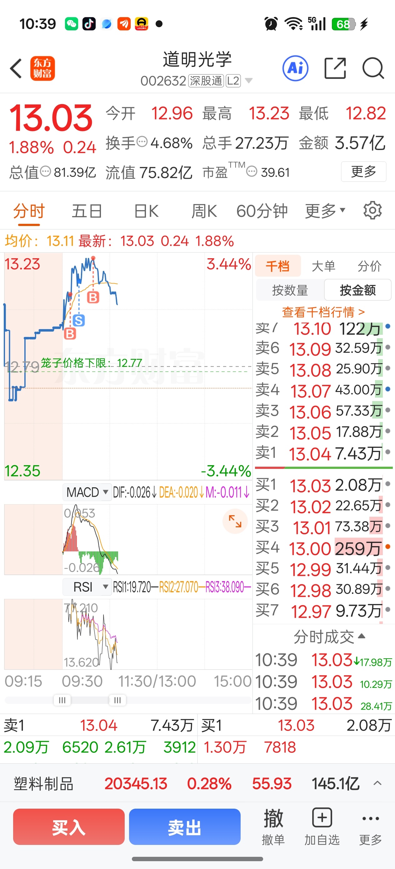 $道明光学(SZ002632)$ 我这是亏了还是赚了