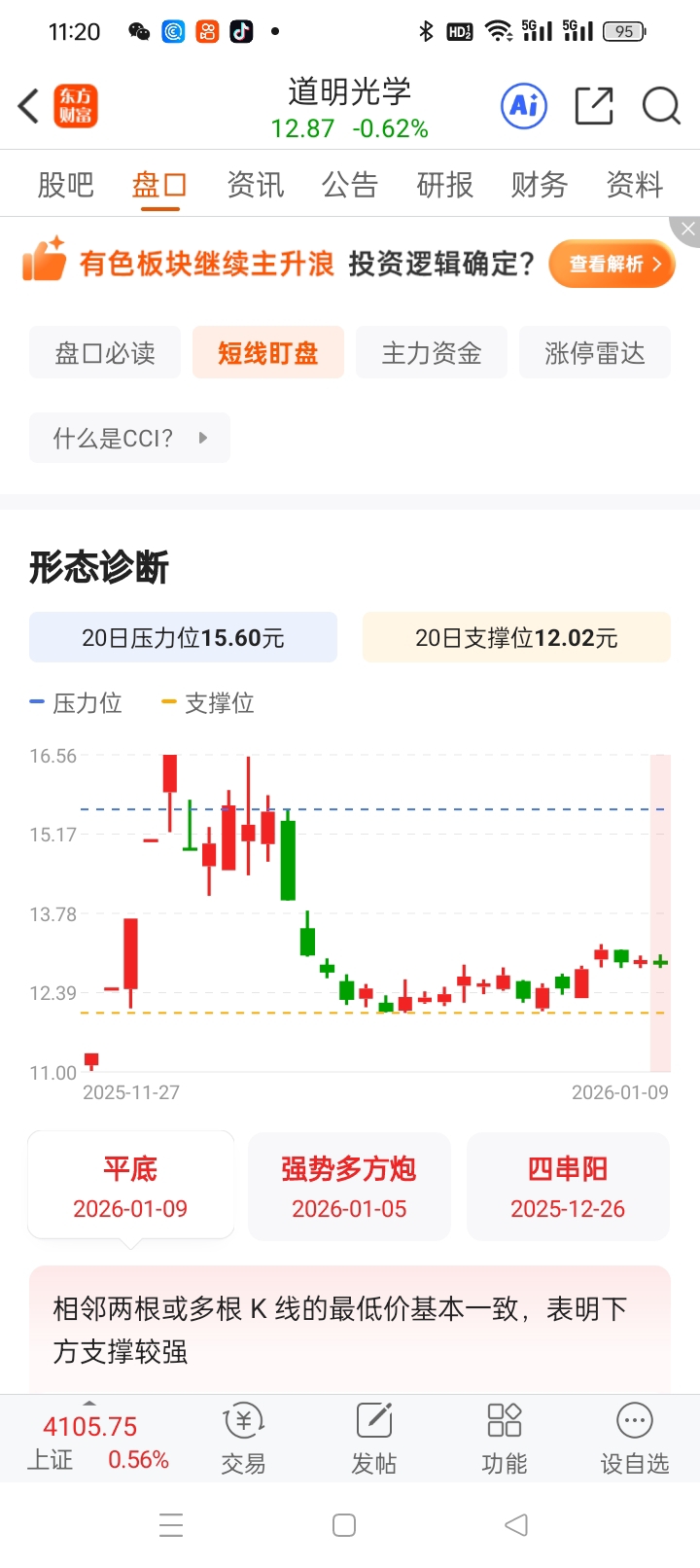 $道明光学(SZ002632)$ 箱体底部横盘。绩优股。Al手机概念,新材料,锂电池,固态电池,华为概念,满仓买入。稳赚不赔。