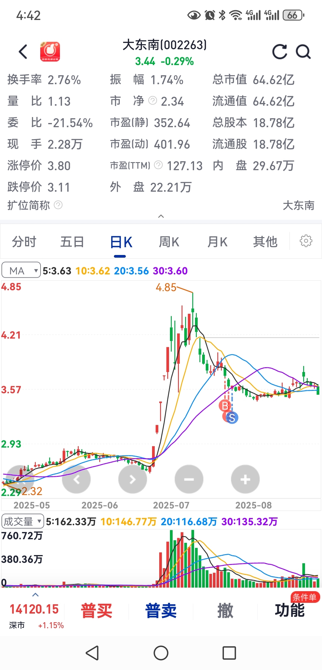然后又买的沈阳化工,结果这两个股票是赔钱跑的。