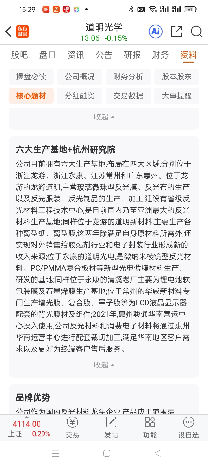 $道明光学(SZ002632)$ 六大生产基地十杭州研究院。