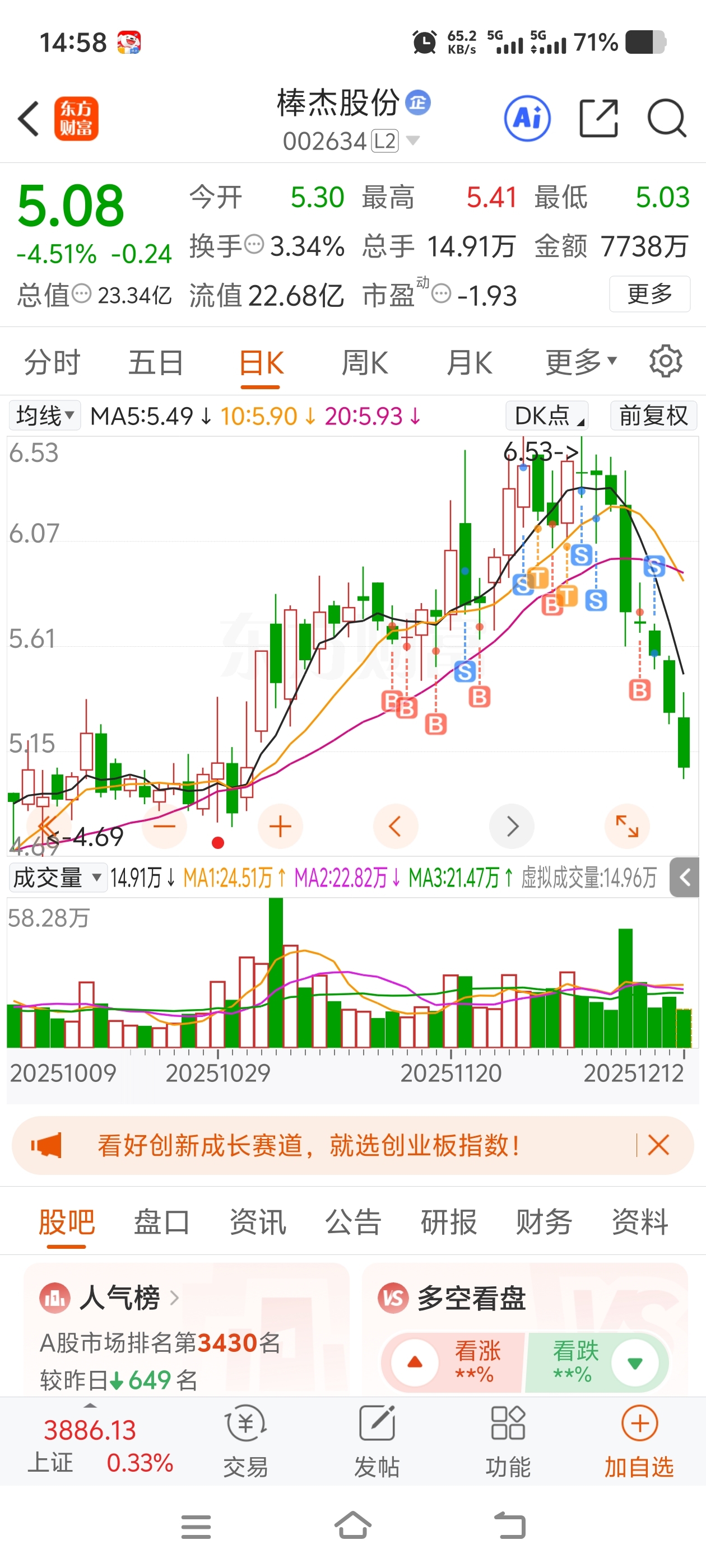 $棒杰股份(SZ002634)$ 这个票给我了两个教训!下跌趋势不能碰,做错了要及时止损,不能有幻想!