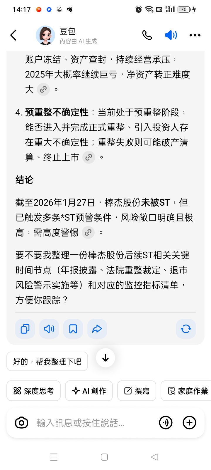 $棒杰股份(SZ002634)$ 查了好多也没弄明白今天为什么会涨停???光伏停工,服装板块也没利好,如果没有概念只是纯粹拉涨停,会不会在年报前主力故意拉高出货然后st,怎么也搞不明白怎么涨停的原因???????有知道具体什么原因的吗?单纯2月10号那个原因也不可能这么强势拉涨停吧?