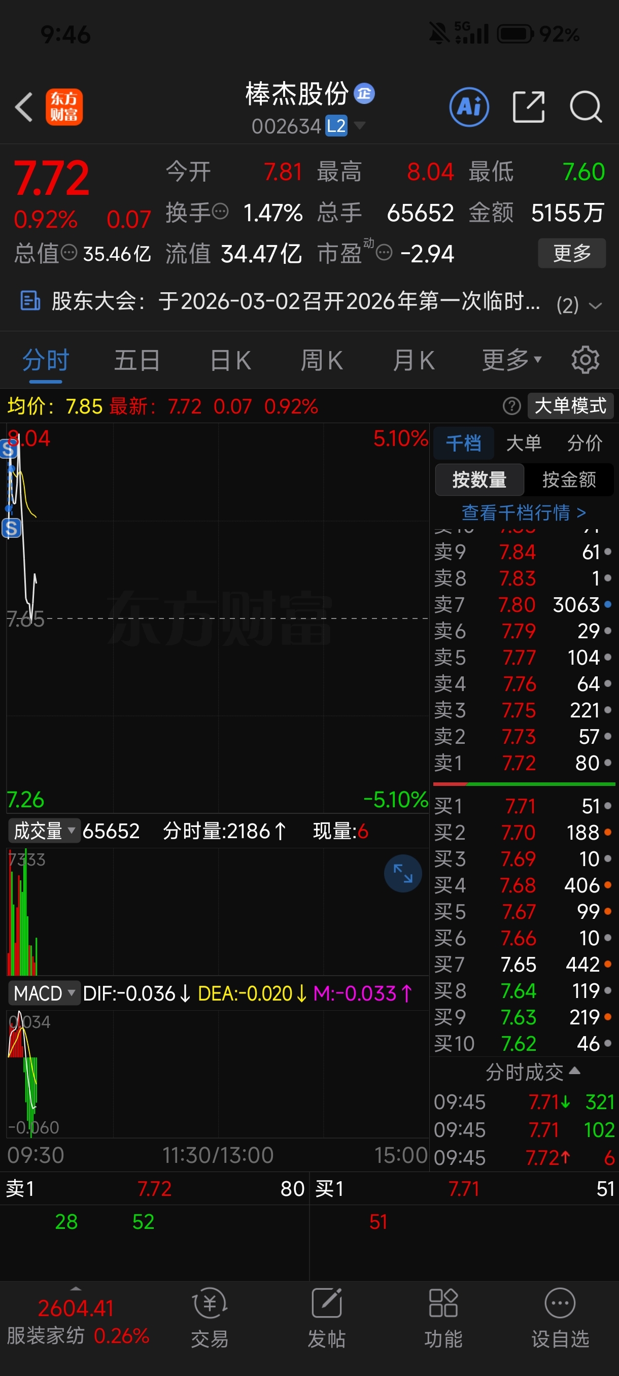 $棒杰股份(SZ002634)$ 我就知道大盘高开必跌,每次都这样,服了