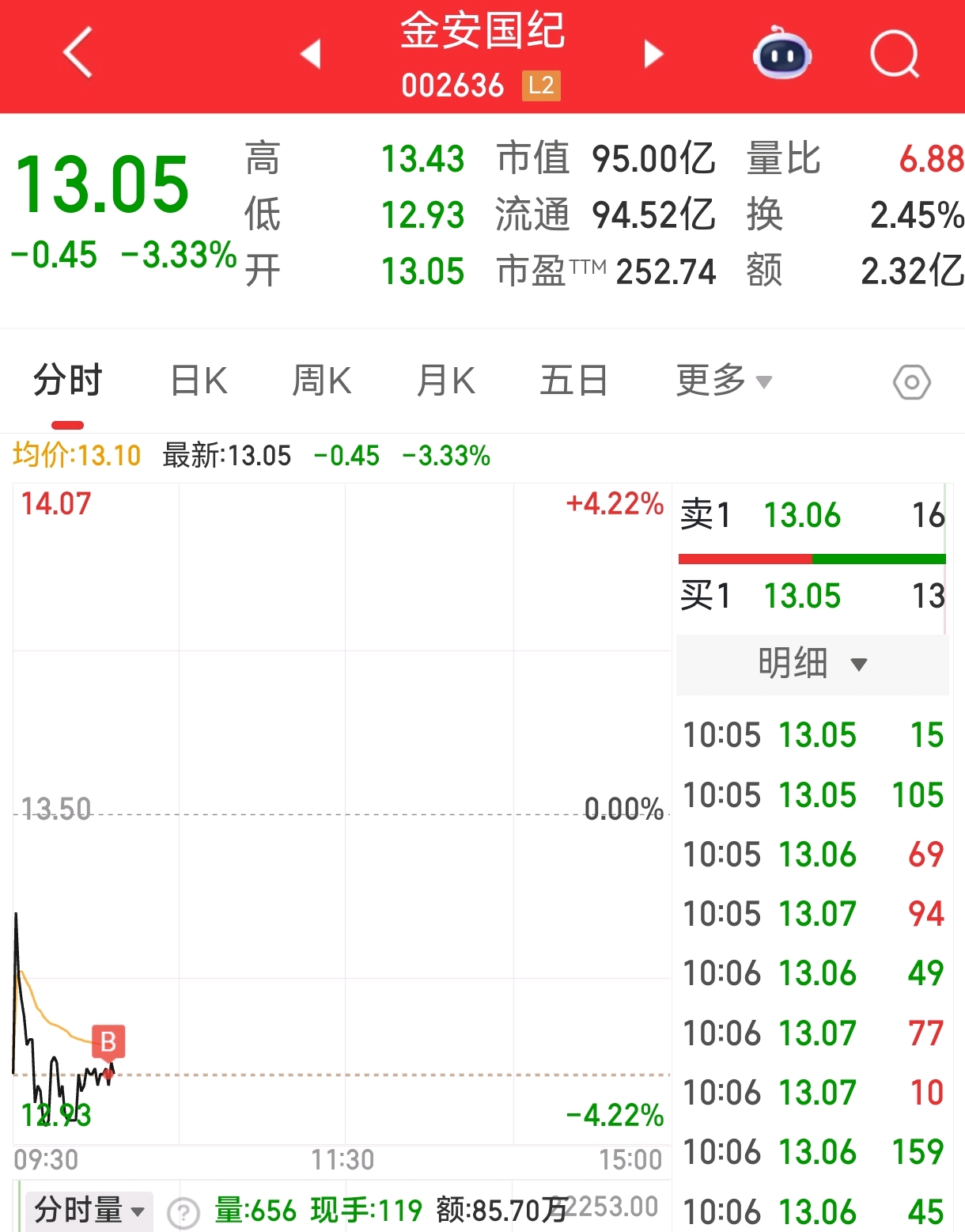 $金安国纪(SZ002636)$ 水下低吸 新开仓试试水