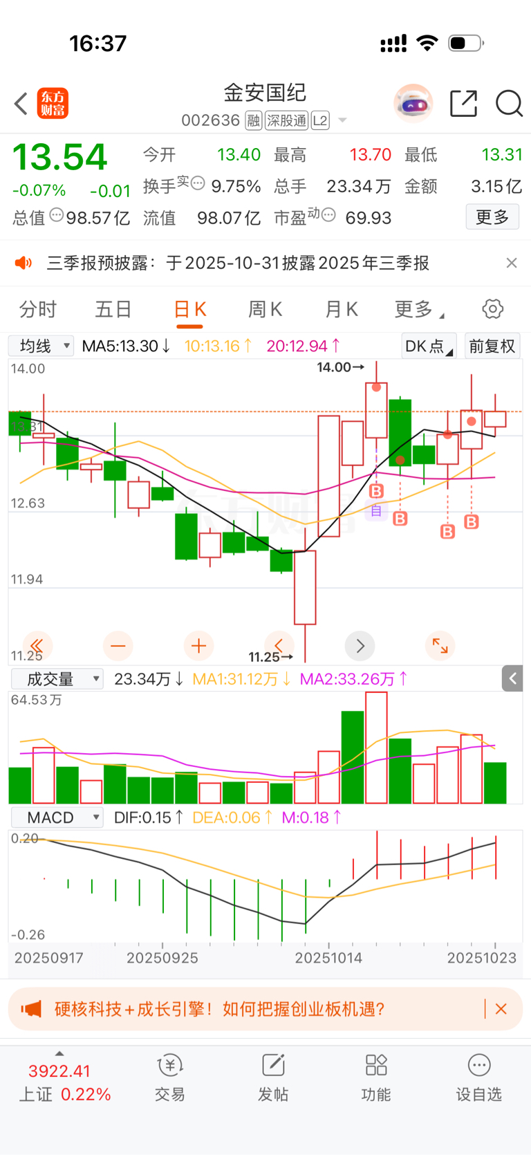 21日最高点13.55,22日收盘13.55,23日收盘13.54。控得真好