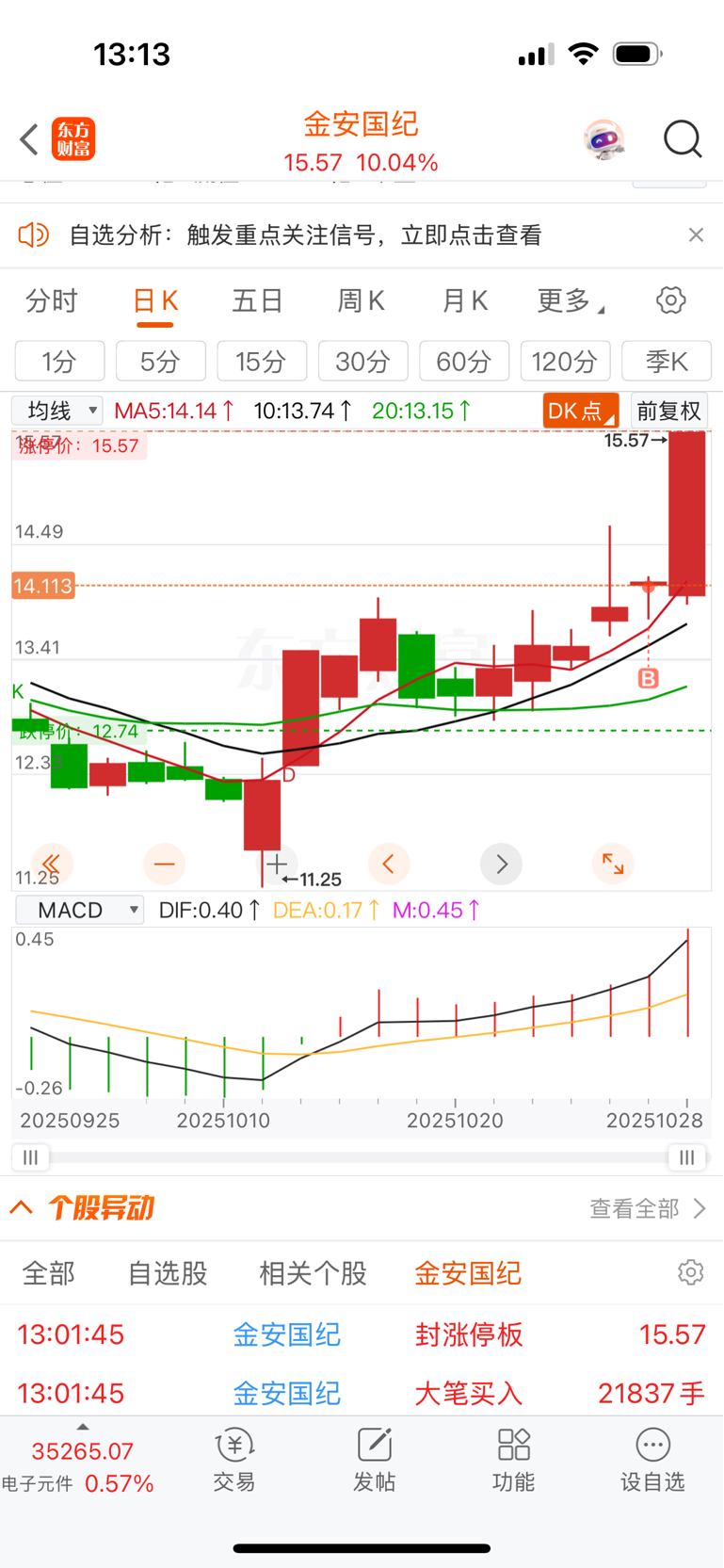 $金安国纪(SZ002636)$ 昨天进的。感谢主力。。。