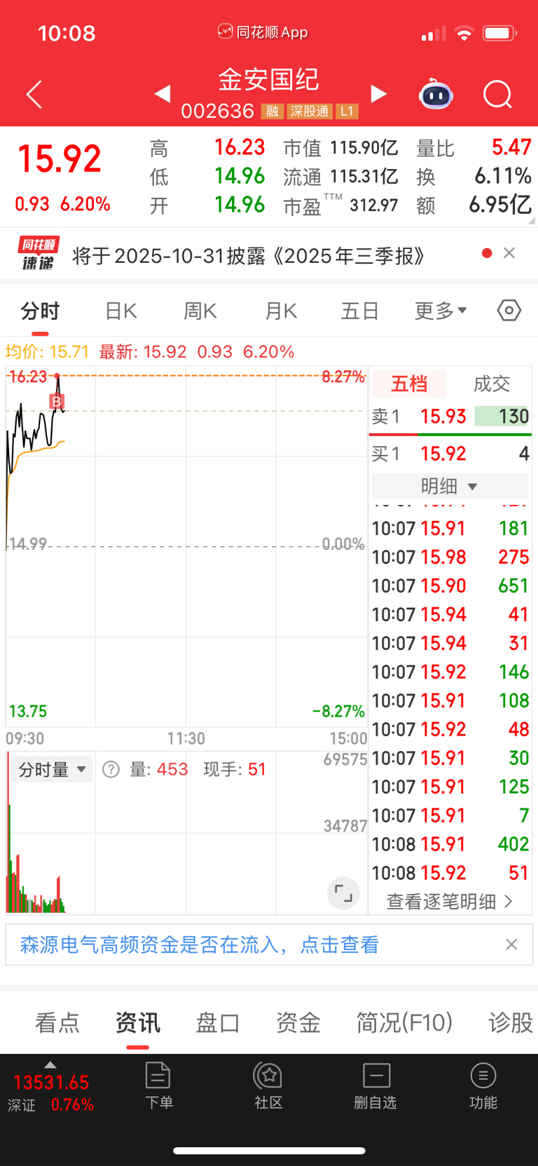 $金安国纪(SZ002636)$ 又被挂在尖尖上。