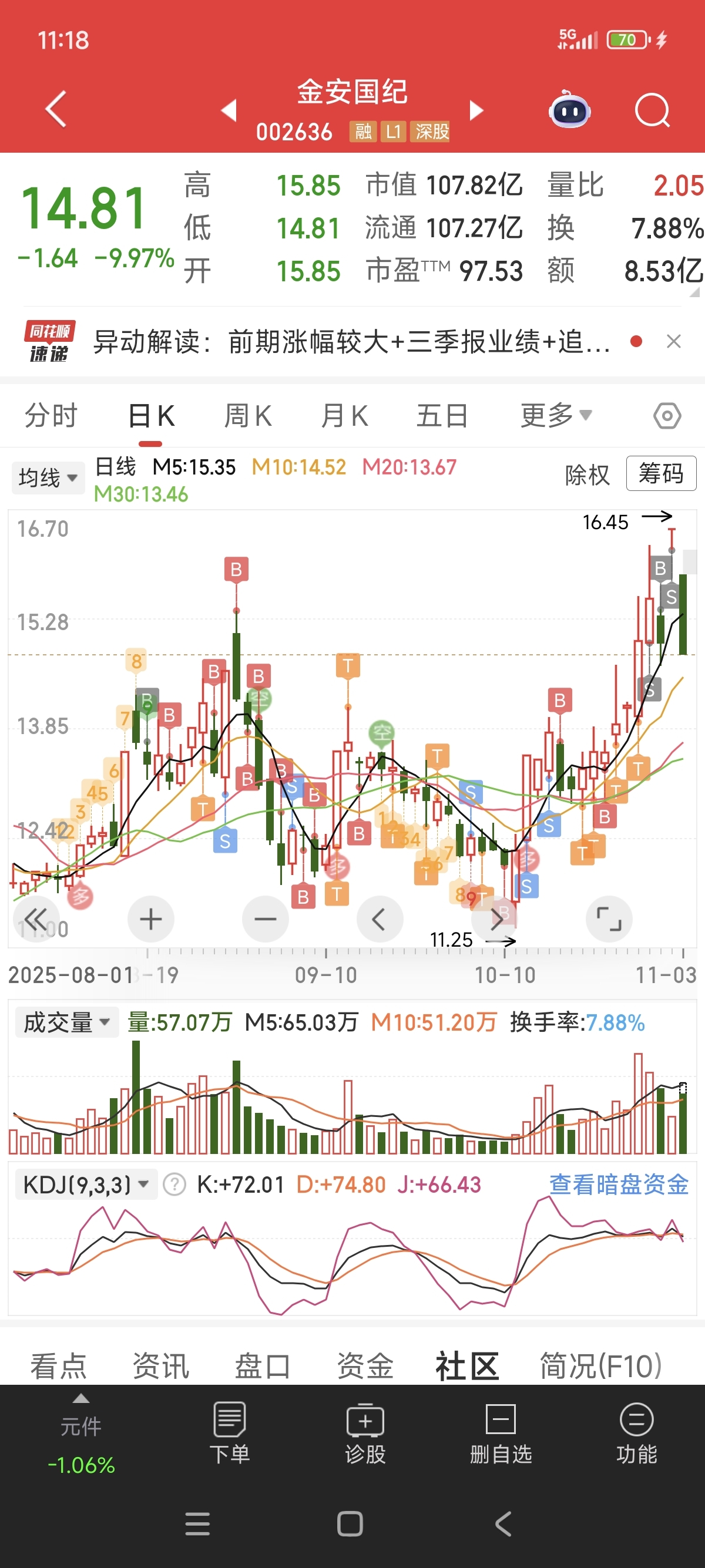 $金安国纪(SZ002636)$ 这个主力算是有良心的,套了我两个月还让我赚钱跑路