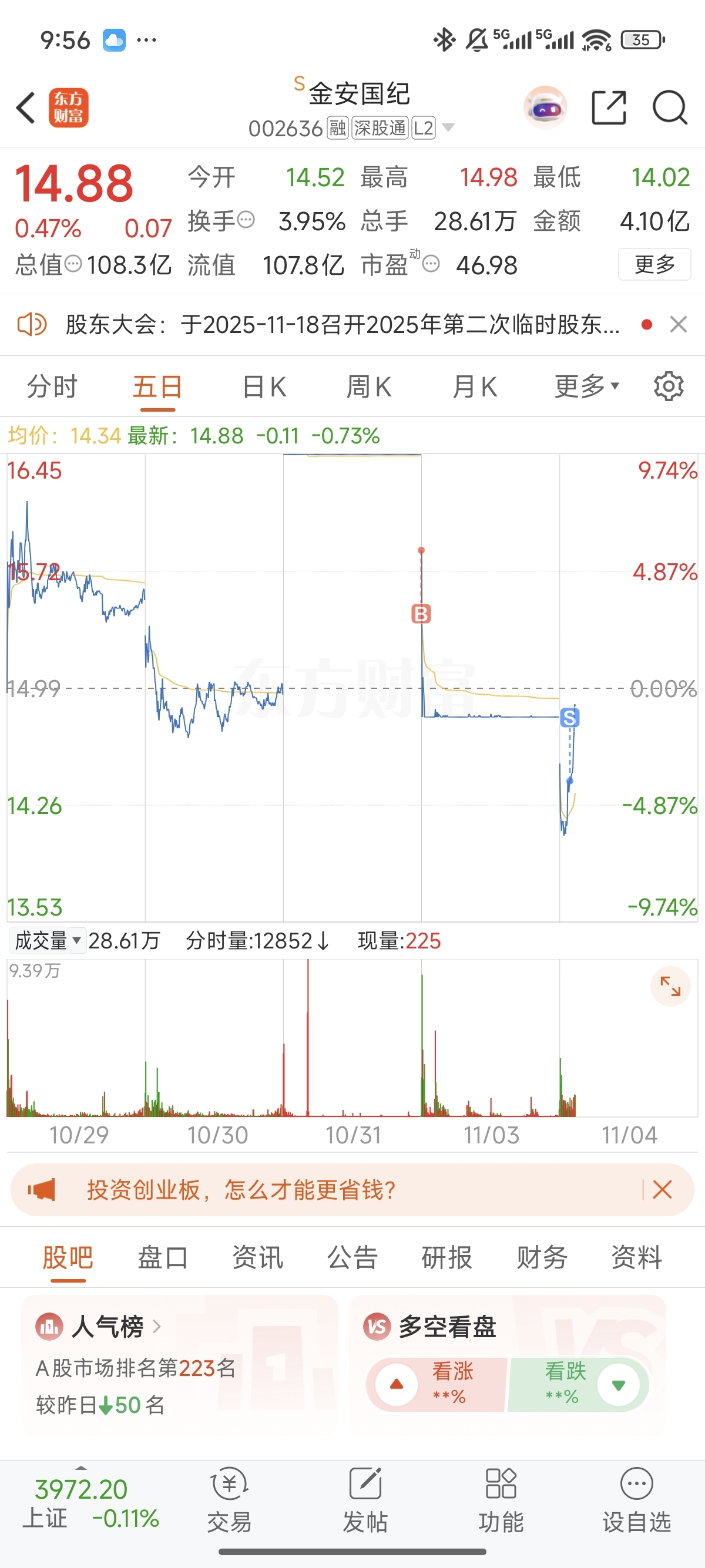 $金安国纪(SZ002636)$ 这主力真会玩玩不起我还躲不起吗,以后遇到这样的主力手法要躲得远远的!其实看历史股性就知道操作很恶心,但被所谓的基本面小作文洗脑了