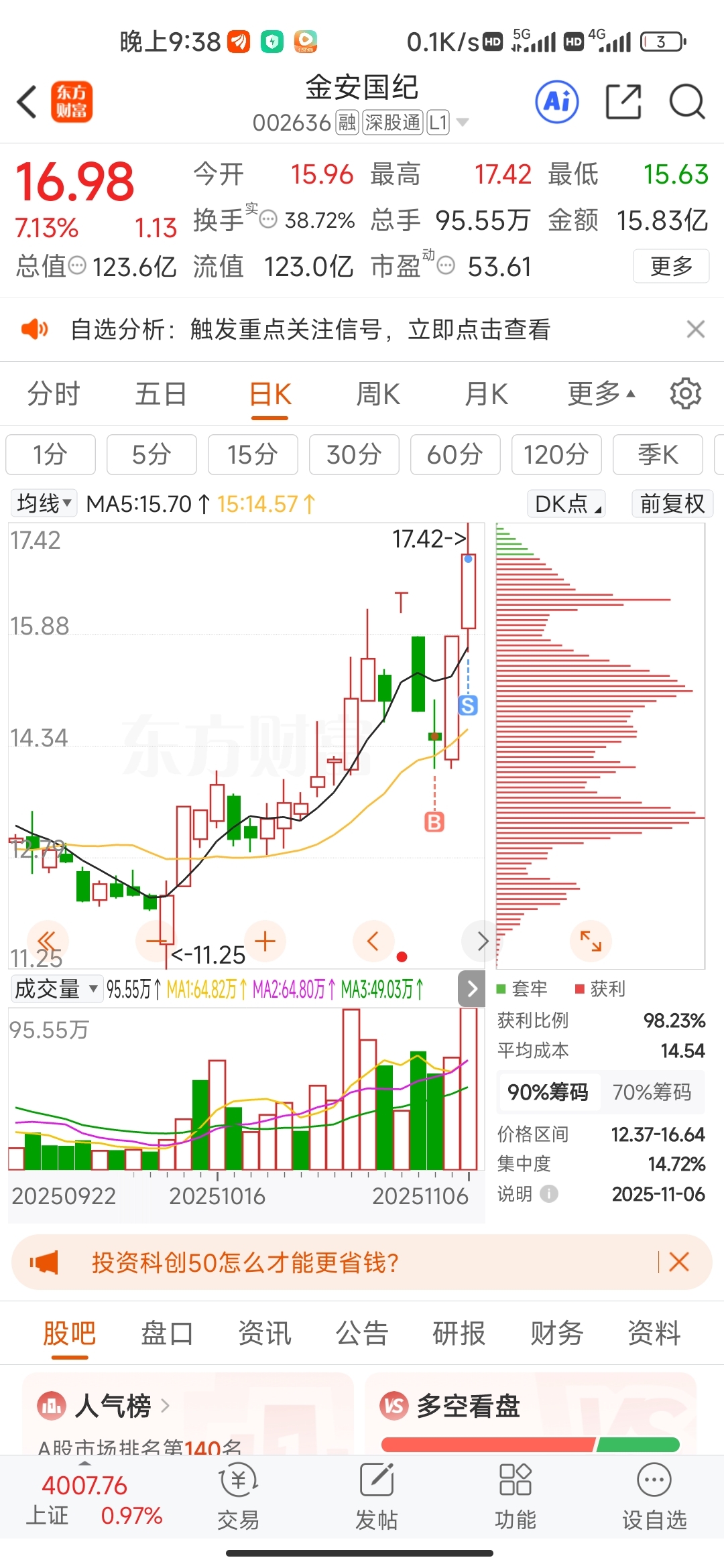 $金安国纪(SZ002636)$ 明天有风险,走了,祝留下的各位发财