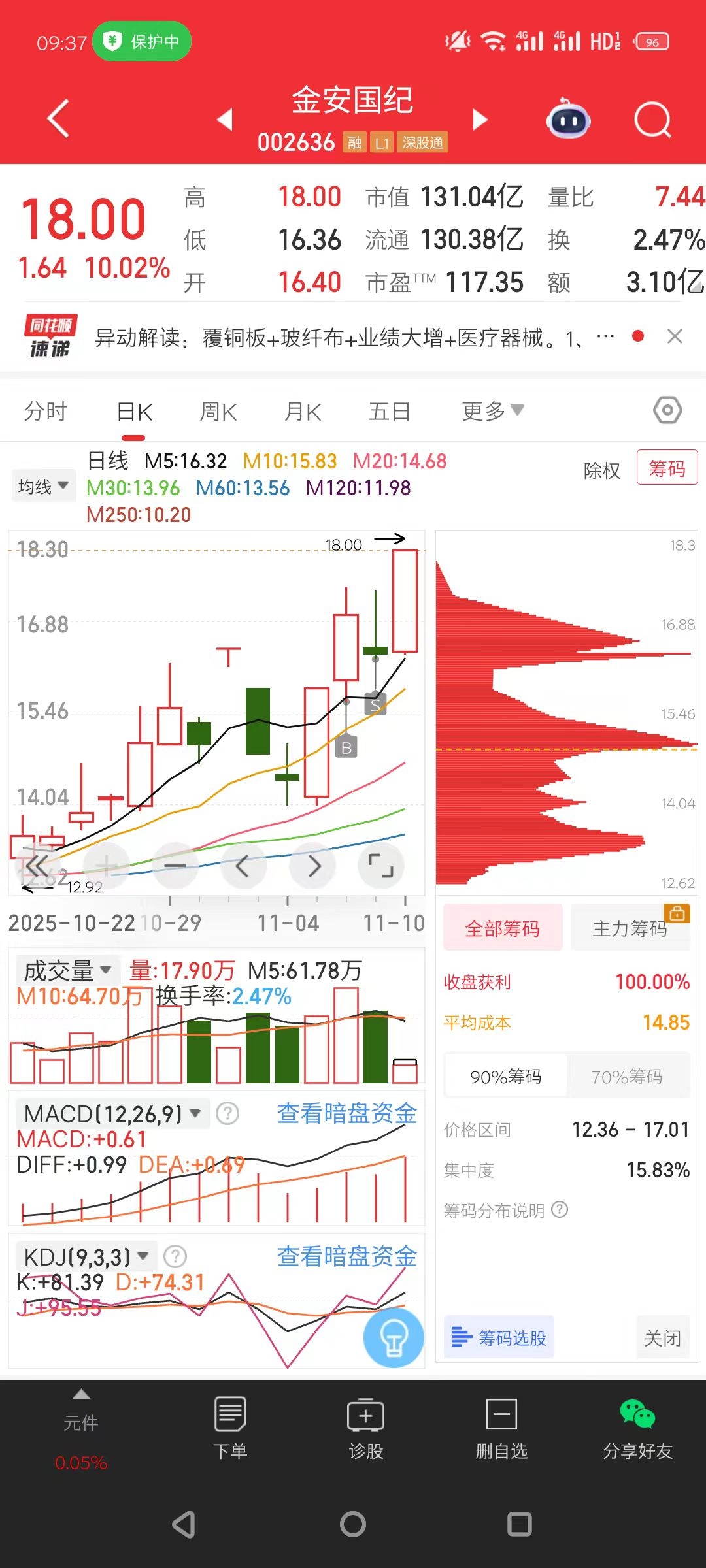 $金安国纪(SZ002636)$ 主力,我额