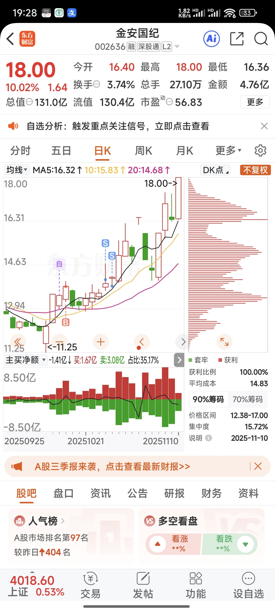 $金安国纪(SZ002636)$ 属于是走在黎明前了 。