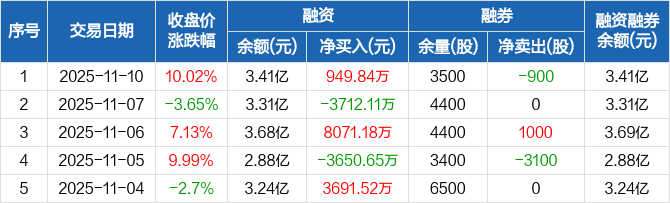 金安国纪融资融券信息显示,2025年11月10日融资净买入949.84万元;融资余额3.41亿元,较前一日增加2.87%。
