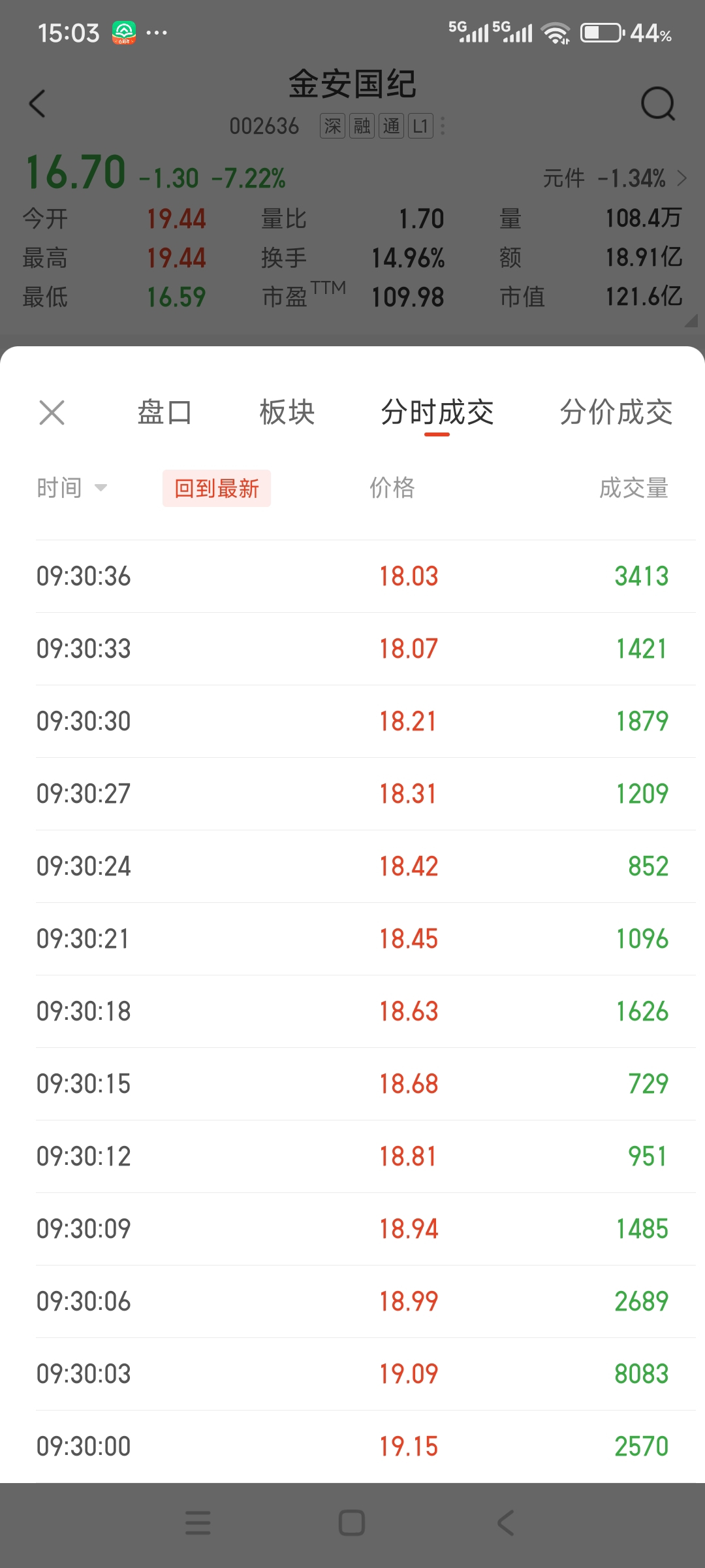 $金安国纪(SZ002636)$ 拿去大家看看吧,开盘后一分钟这些卖单全部卖给今天看到竞价高开后挂买单的散户了。今天这样的大阴线杀伤力很大,大的你无法想象。甚至明天大幅低开都是板上钉钉的事实了。