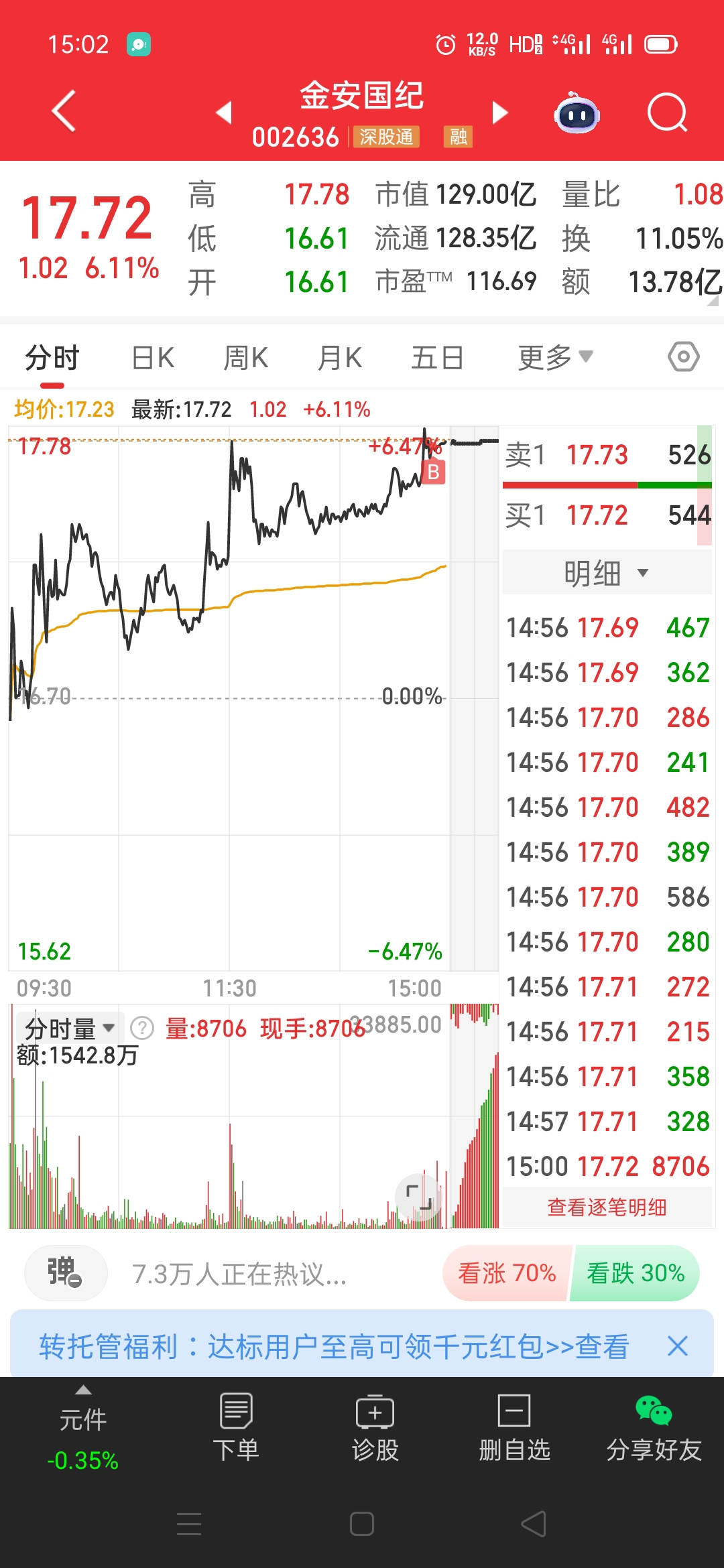 尾盘布局,20%,明后天必吃肉!!!
