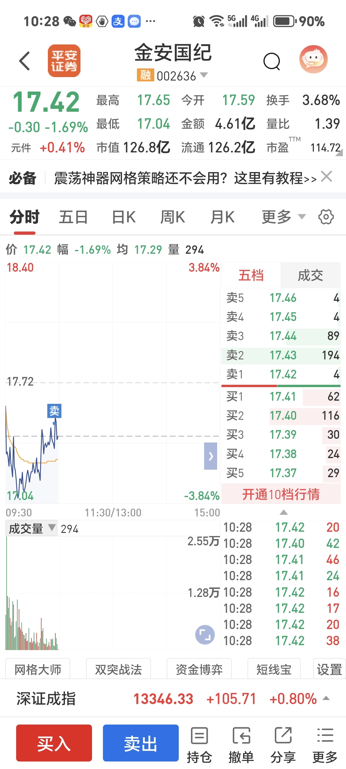 $金安国纪(SZ002636)$ 昨天17元加仓今天17.49出了,熬不住了