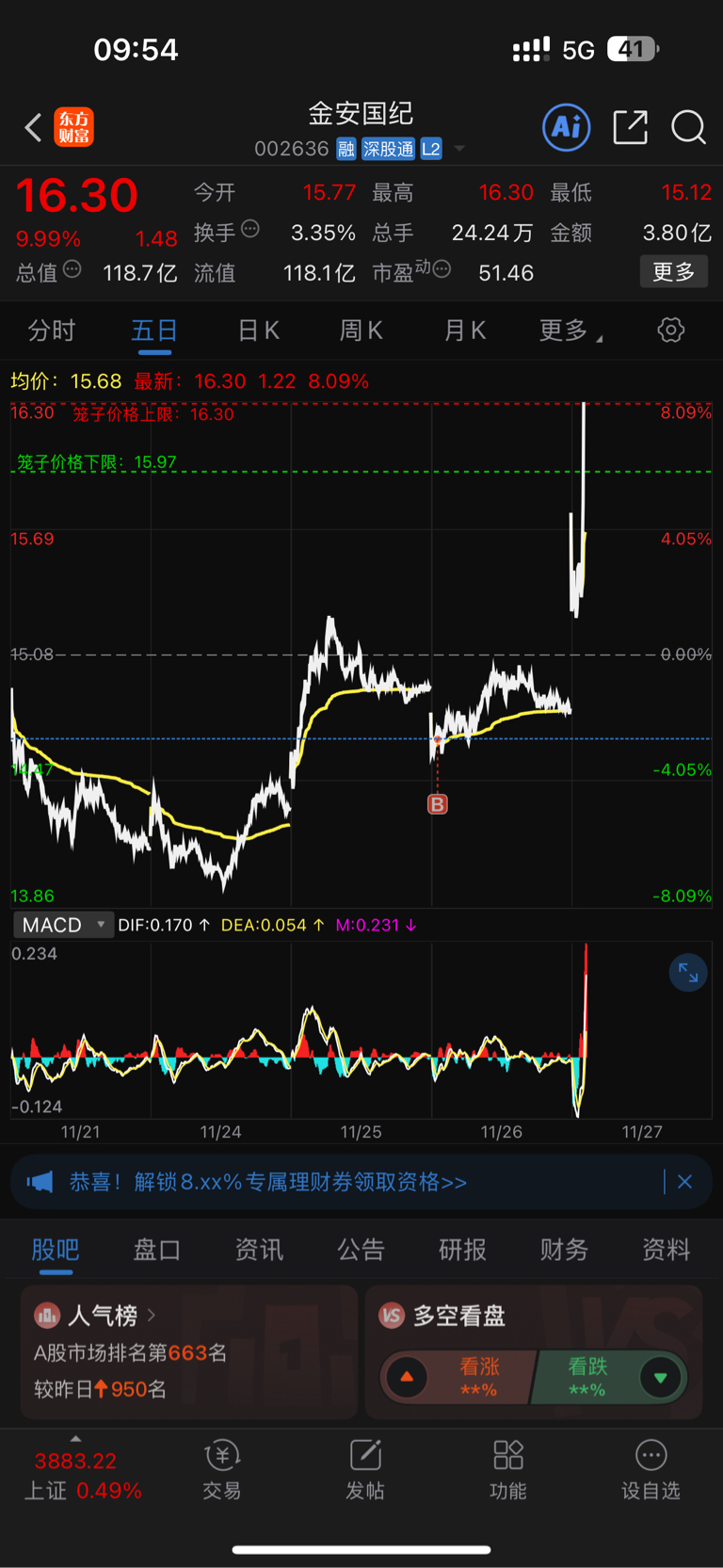 $金安国纪(SZ002636)$ 昨天低位买入的