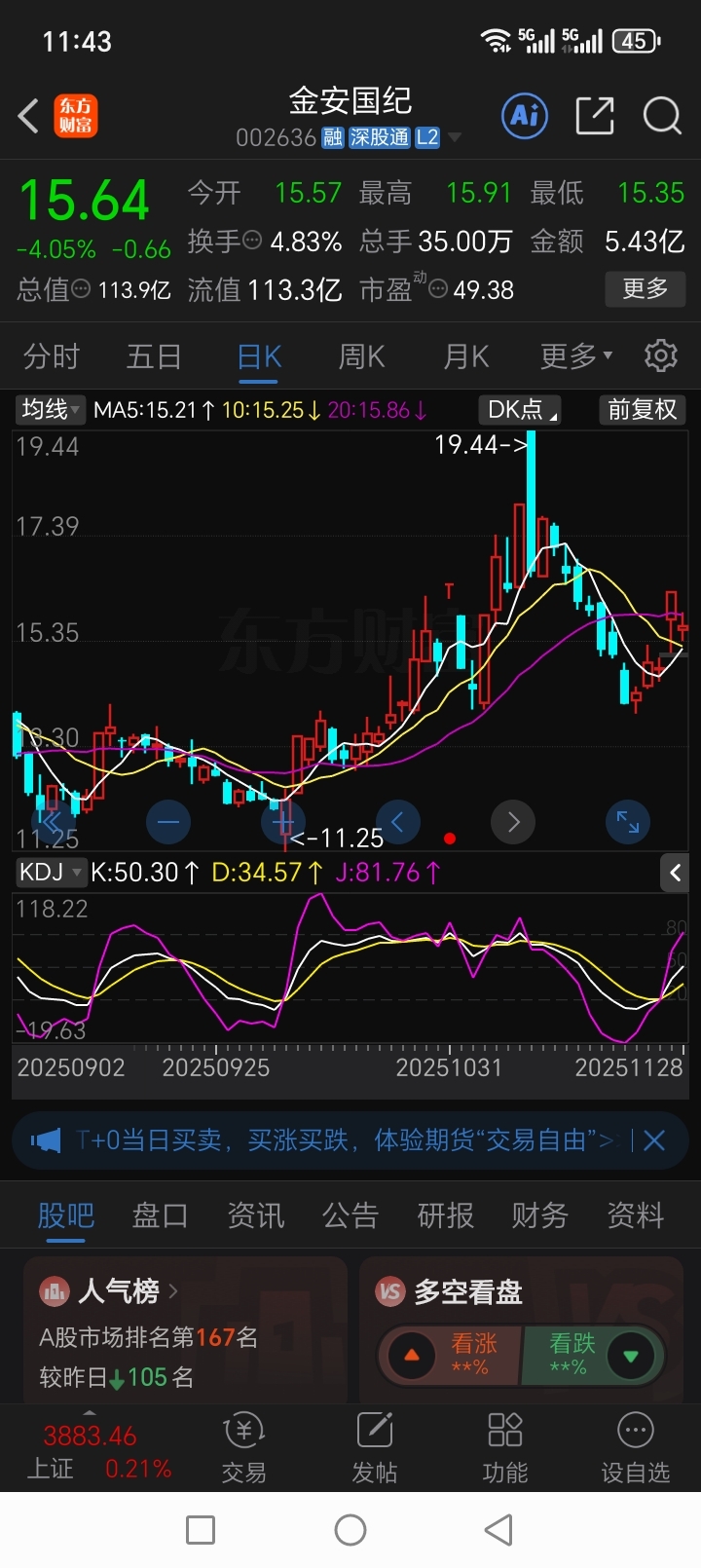 $金安国纪(SZ002636)$ 全是散户买的,下午跌停板了