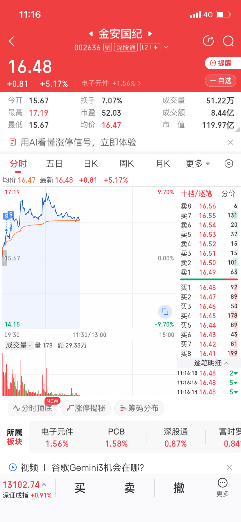 $金安国纪(SZ002636)$ 想着做T的,卖飞了,现在价格和我卖价差不多,要不要买回来啊。