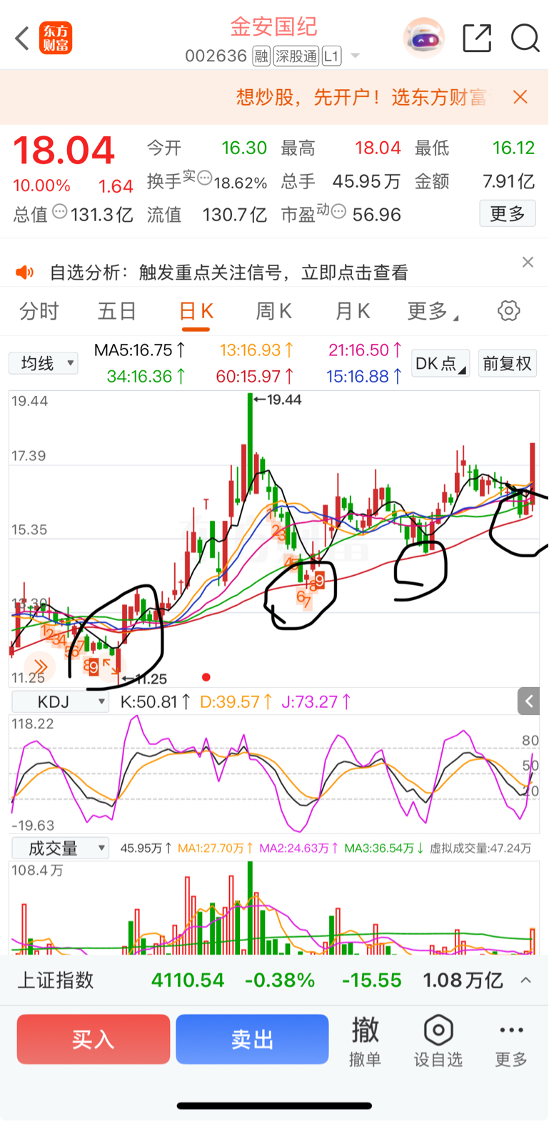 $金安国纪(SZ002636)$ 这图画的,本来早上想买的,一看大盘这样没敢。原来主力玩的明牌