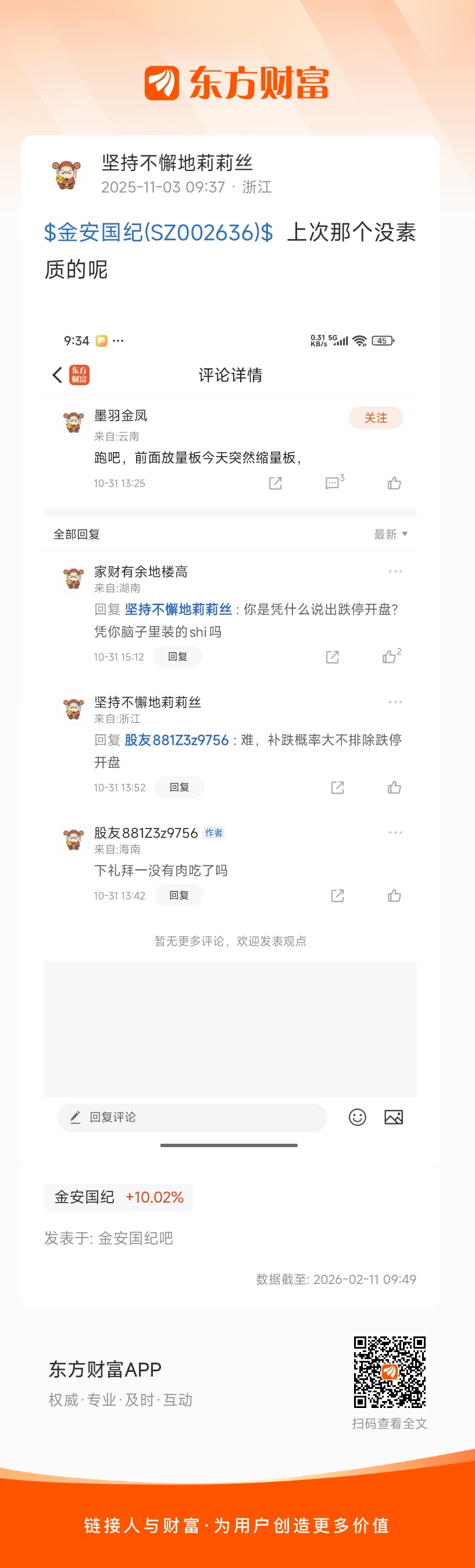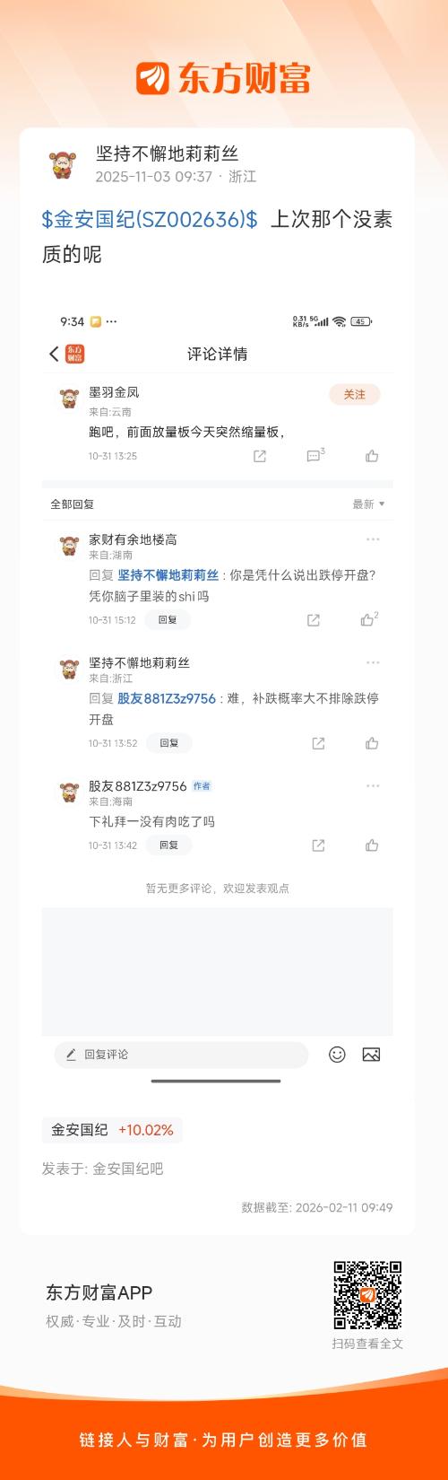 $金安国纪(SZ002636)$  上次那个没素质的呢