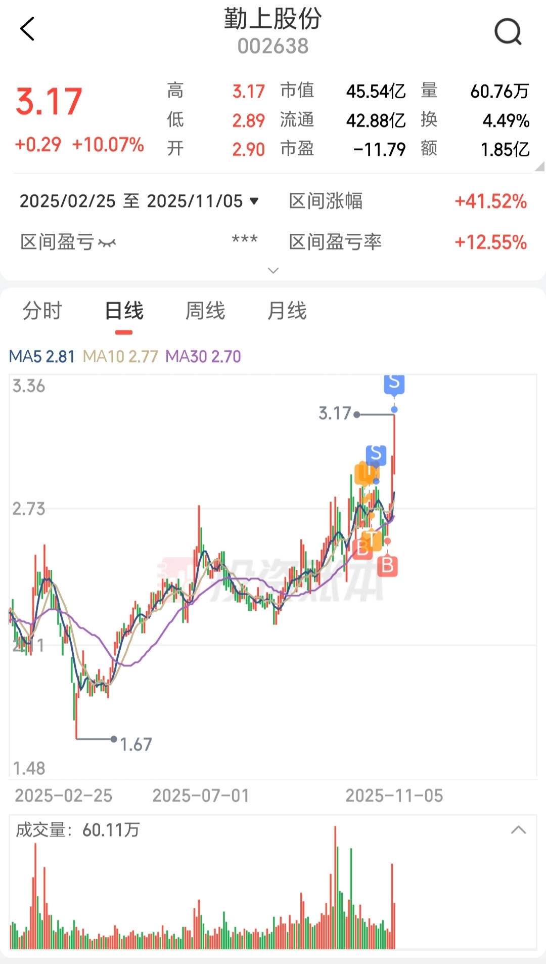 $勤上股份(SZ002638)$ 算了算了,虽然还有可能有两个板(不能吃大肉了),多一只不如少一只,清仓,继续持平下一只