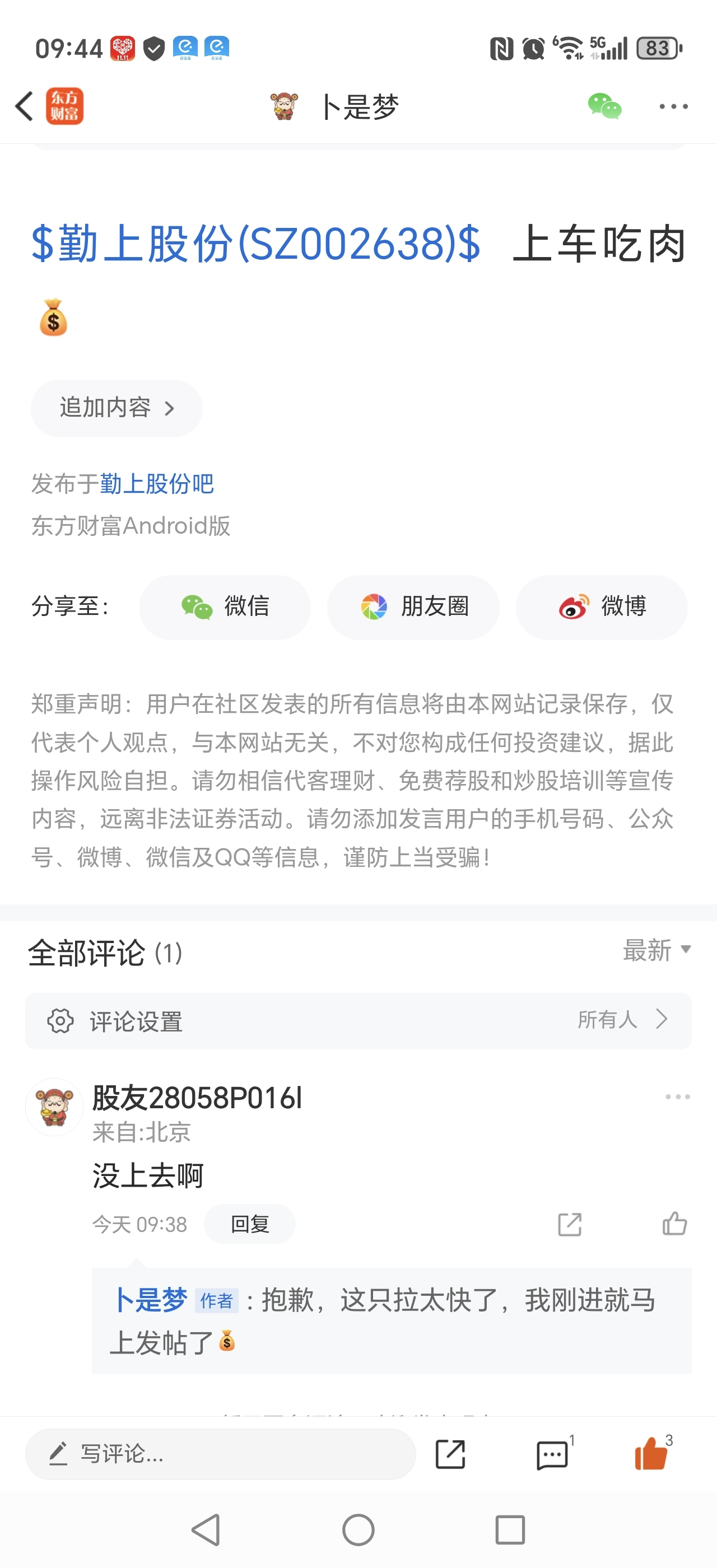 温馨提示: 1.根据《证券法》规定,禁止编造、传播虚假信息或者误导性信息,扰乱证券市场;2.用户在本社区发表的所有资料、言论等仅代表个人观点,与本网站立场无关,不对您构成任何投资建议。用户应基于自己的独立判断,自行决定证券投资并承担相应风险。《东方财富社区管理规定》
