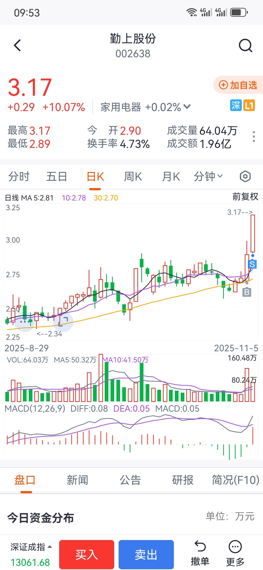 $勤上股份(SZ002638)$ 我来看看,卖早了吗