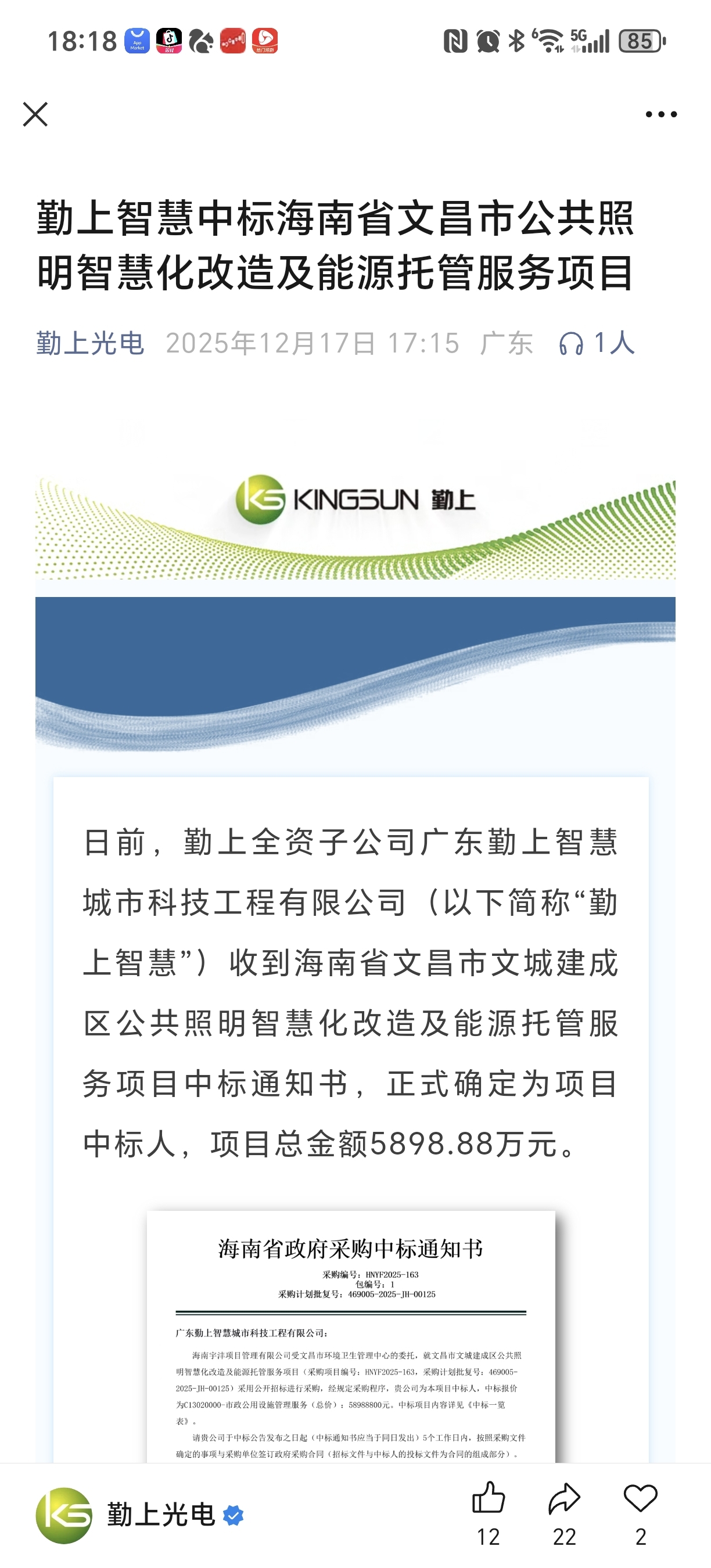 $勤上股份(SZ002638)$ 中标海南自贸区六千万大项目!