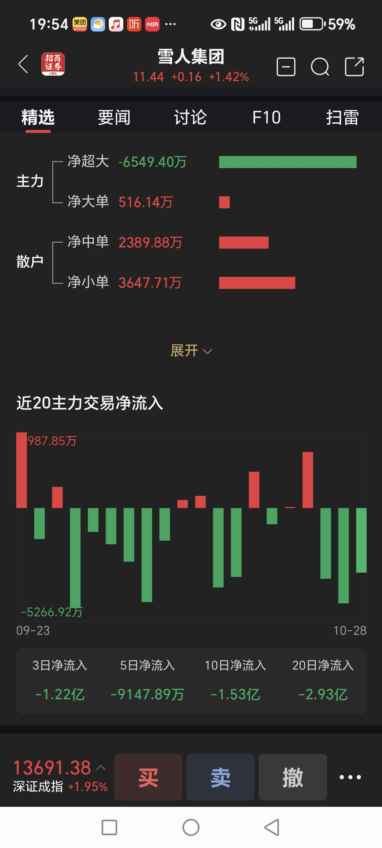 $雪人集团(SZ002639)$ 看看这资金流出量,还臆想大涨?
