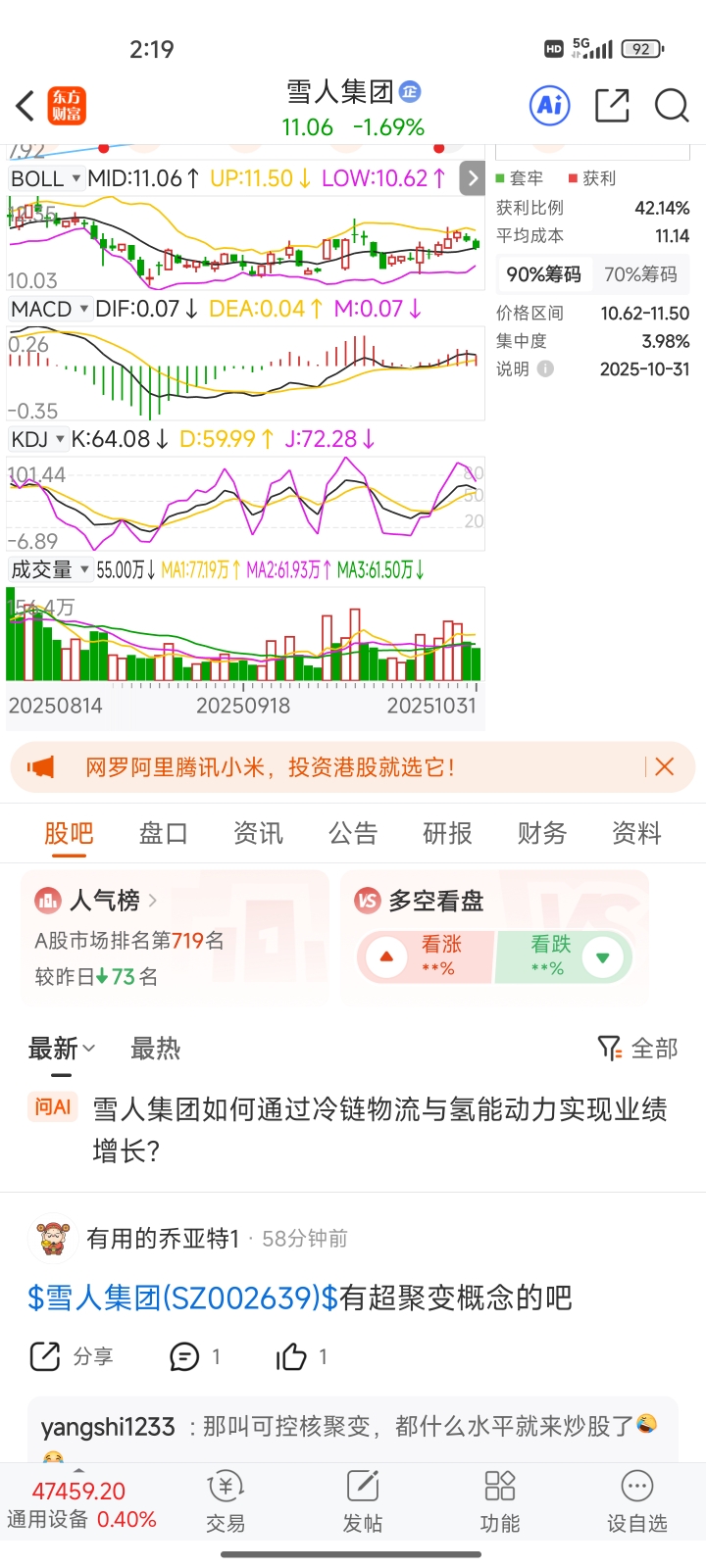 $雪人集团(SZ002639)$ 布林参数20调成10,走势就比较明朗,左下跌缩口转横盘,右侧缩口中线略有上拐的迹象,尾盘的诱空有可能是吓人走