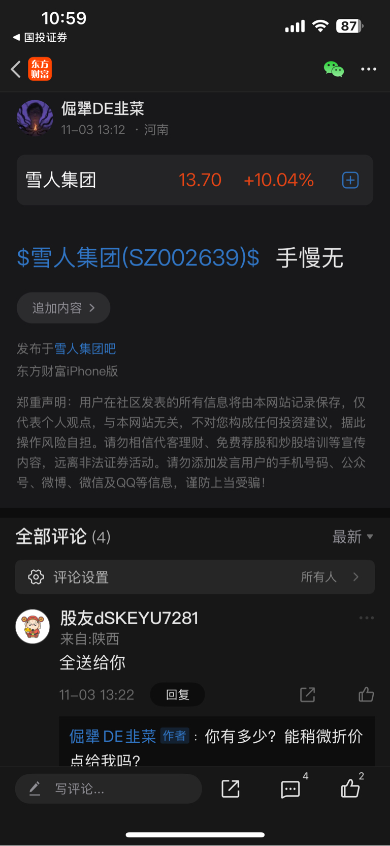 温馨提示: 1.根据《证券法》规定,禁止编造、传播虚假信息或者误导性信息,扰乱证券市场;2.用户在本社区发表的所有资料、言论等仅代表个人观点,与本网站立场无关,不对您构成任何投资建议。用户应基于自己的独立判断,自行决定证券投资并承担相应风险。《东方财富社区管理规定》