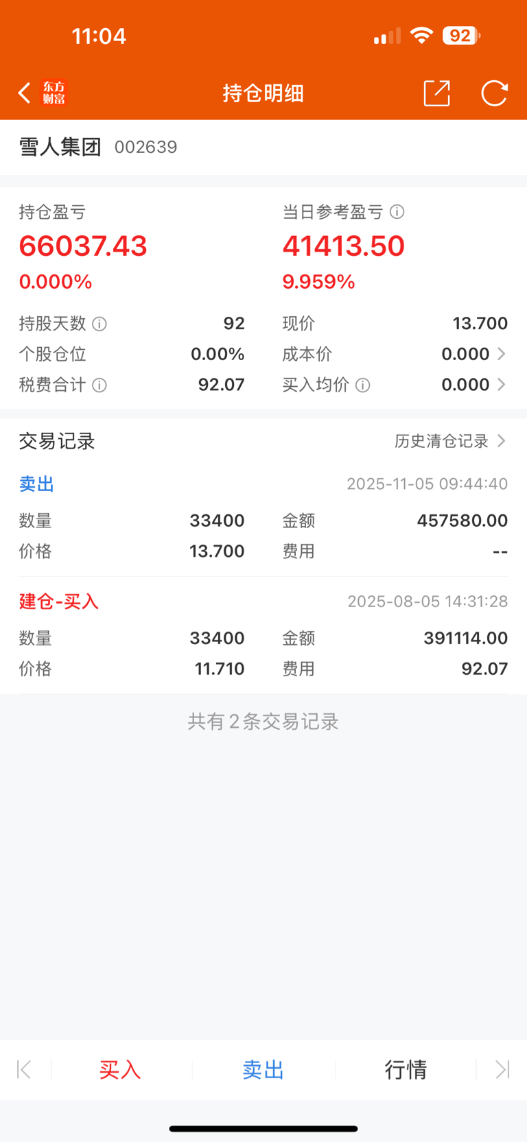 $雪人集团(SZ002639)$ 落袋为安…套了92天…过程就不说了~谢谢主力886
