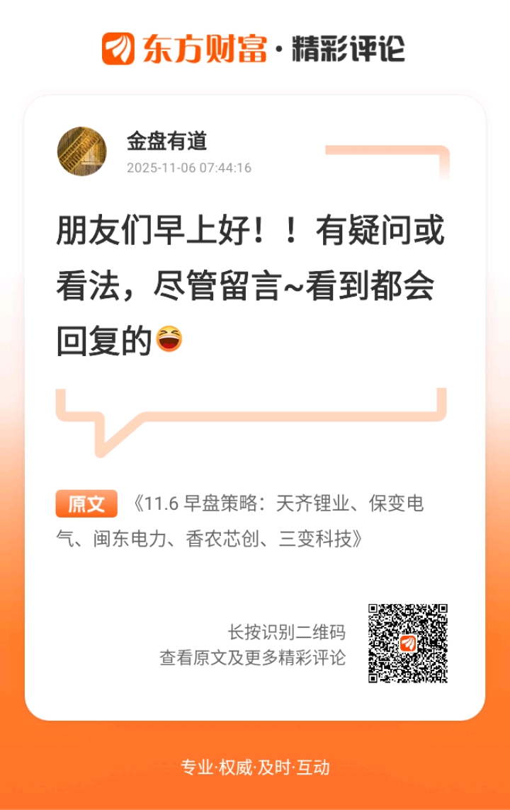 发表于 2025-11-06 08:45:30 东方财富Android版 发布于 江苏