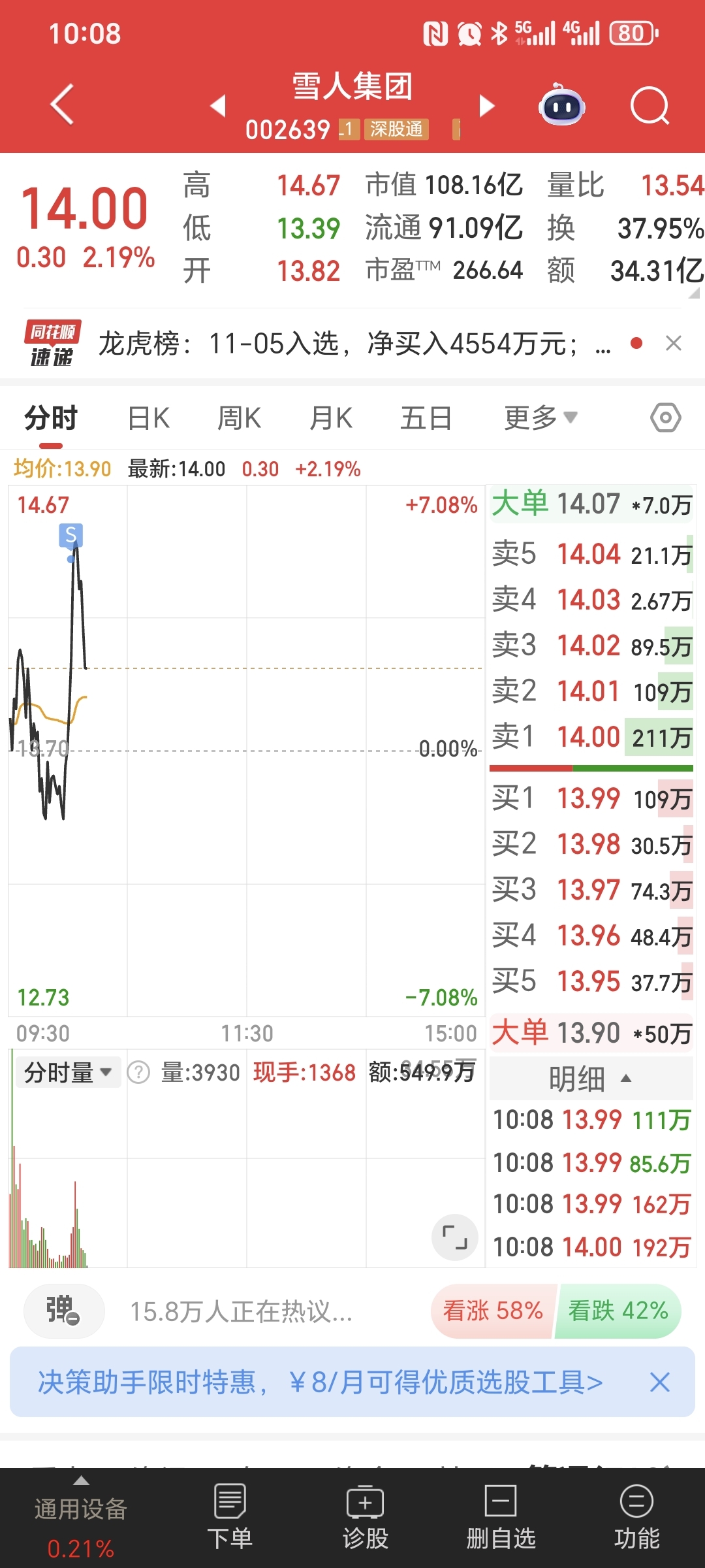 $雪人集团(SZ002639)$