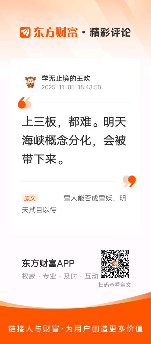 //@学无止境的王欢 :上三板,都难。明天海峡概念分化,会被带下来。