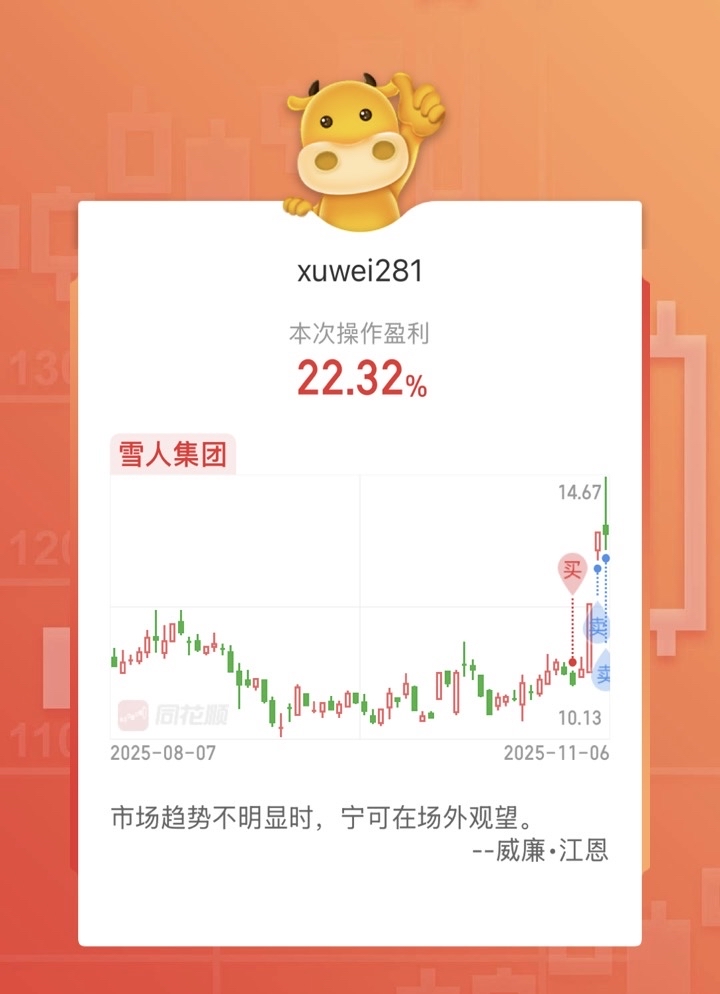 $雪人集团(SZ002639)$ 很幸运,拿了五天,小挣,今天先撤了,留下的发财。