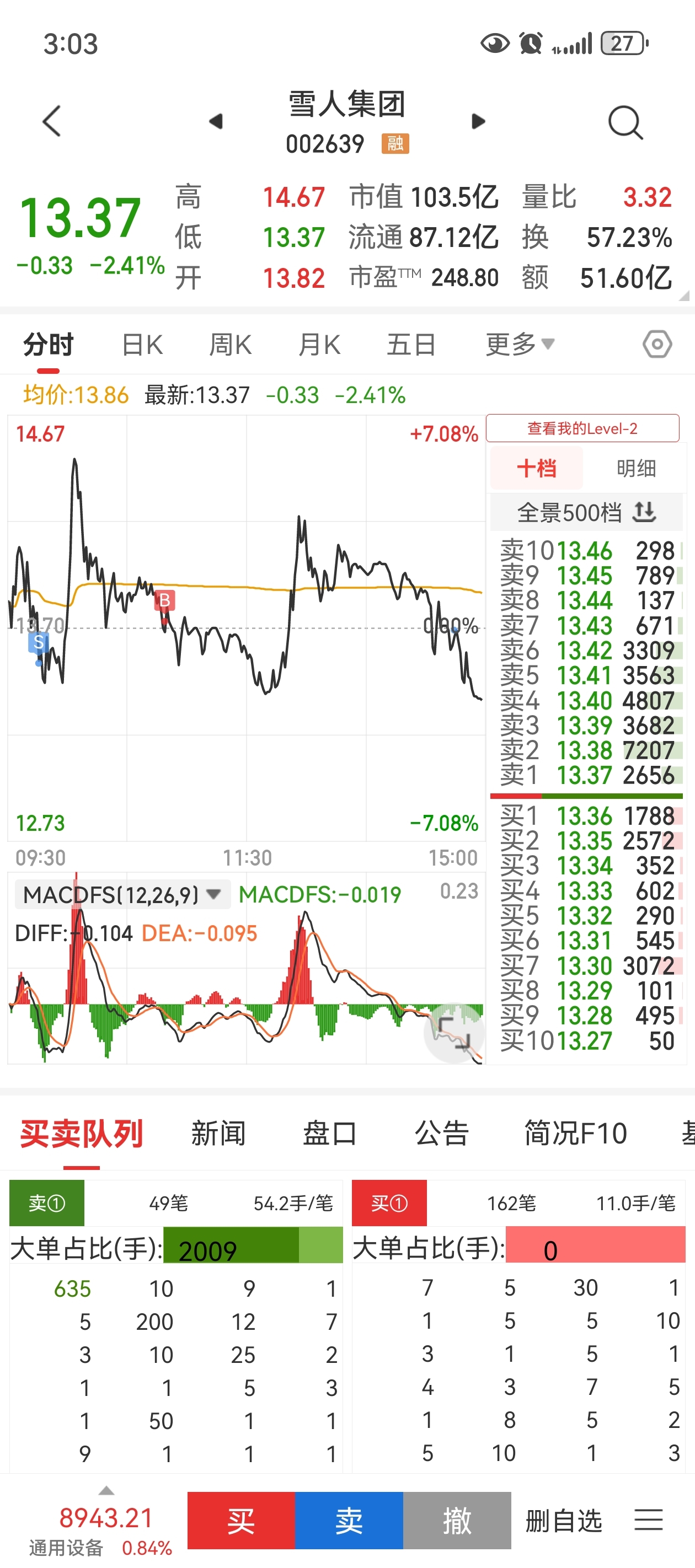 $雪人集团(SZ002639)$ 唉,T的到钢板上了,今天亏钱,纯自己找的!13.69全出了!以后看到宁波桑汪,先跑,就是对的!不过还有反包预期的!