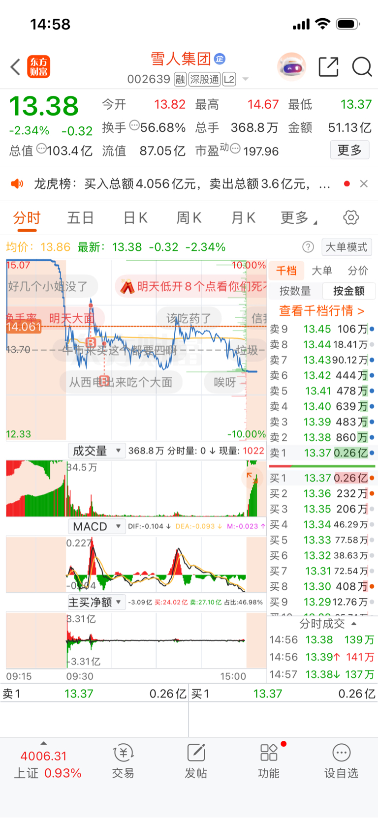 $雪人集团(SZ002639)$ 什么玩意,明天又要割肉,天天这样,没买上一个涨的。
